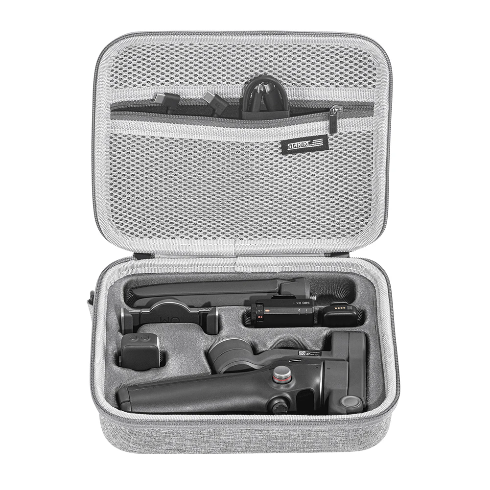 paracardales portátiles om7 o om7P.Se adapta a DJI OM7/7P, abrazaderas magnéticas para teléfonos, módulos de seguimiento, trípodes de mano, receptores, mini micrófonos y más.El bolsillo de malla de la cubierta superior sirve como espacio para cables de datos y cargadores.