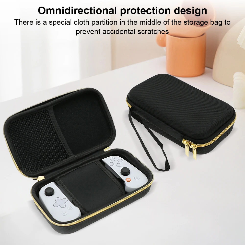 2.Estuche de viaje portátil de protección integral:Con un divisor de tela exclusivo, este estuche de viaje portátil protege la pantalla de su controlador contra rasguños accidentales.Ya sea para uso diario o para viajes, ofrece protección total para mantener su dispositivo seguro.