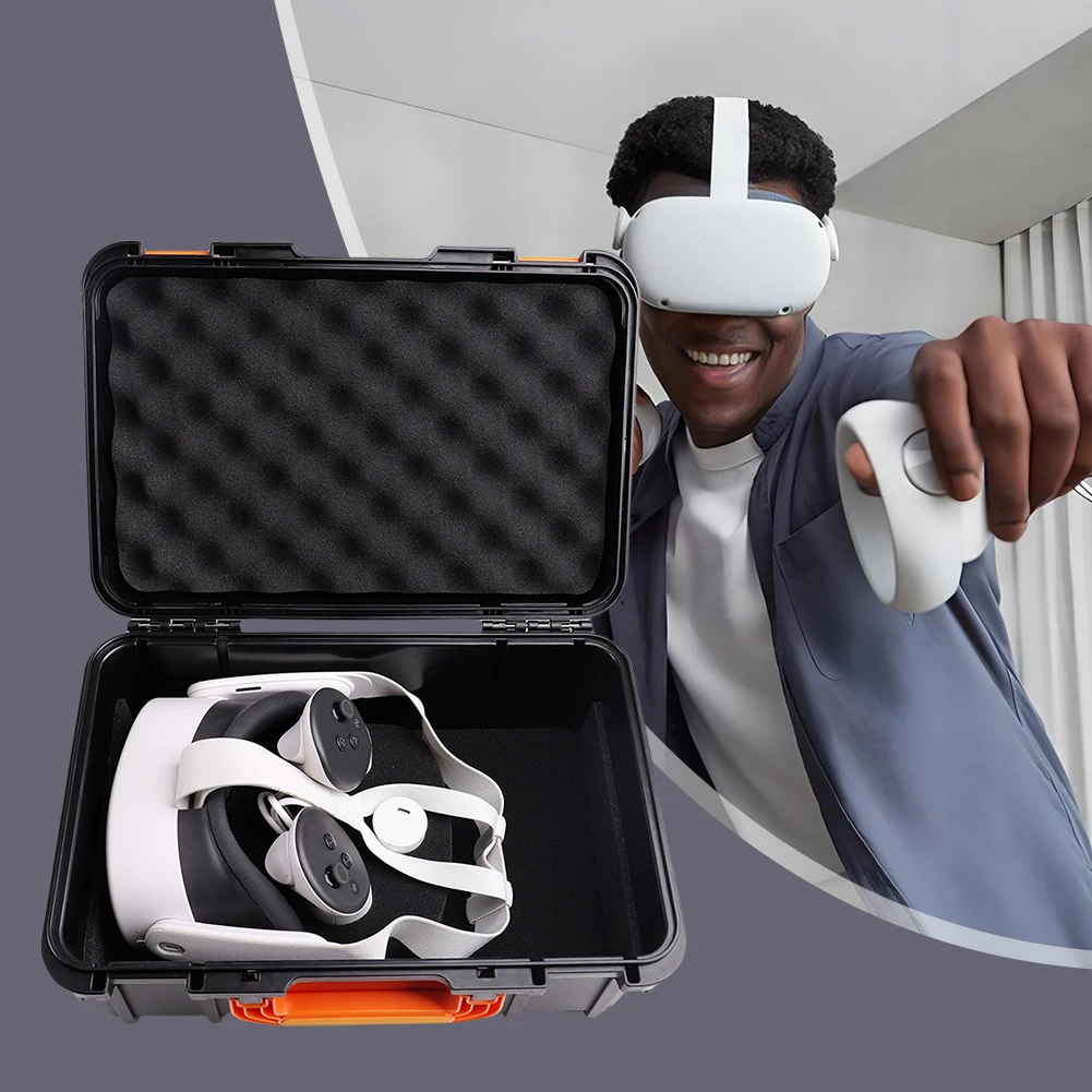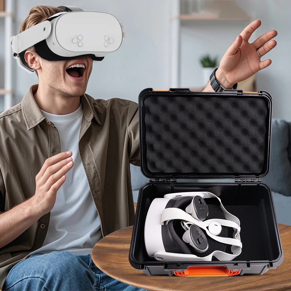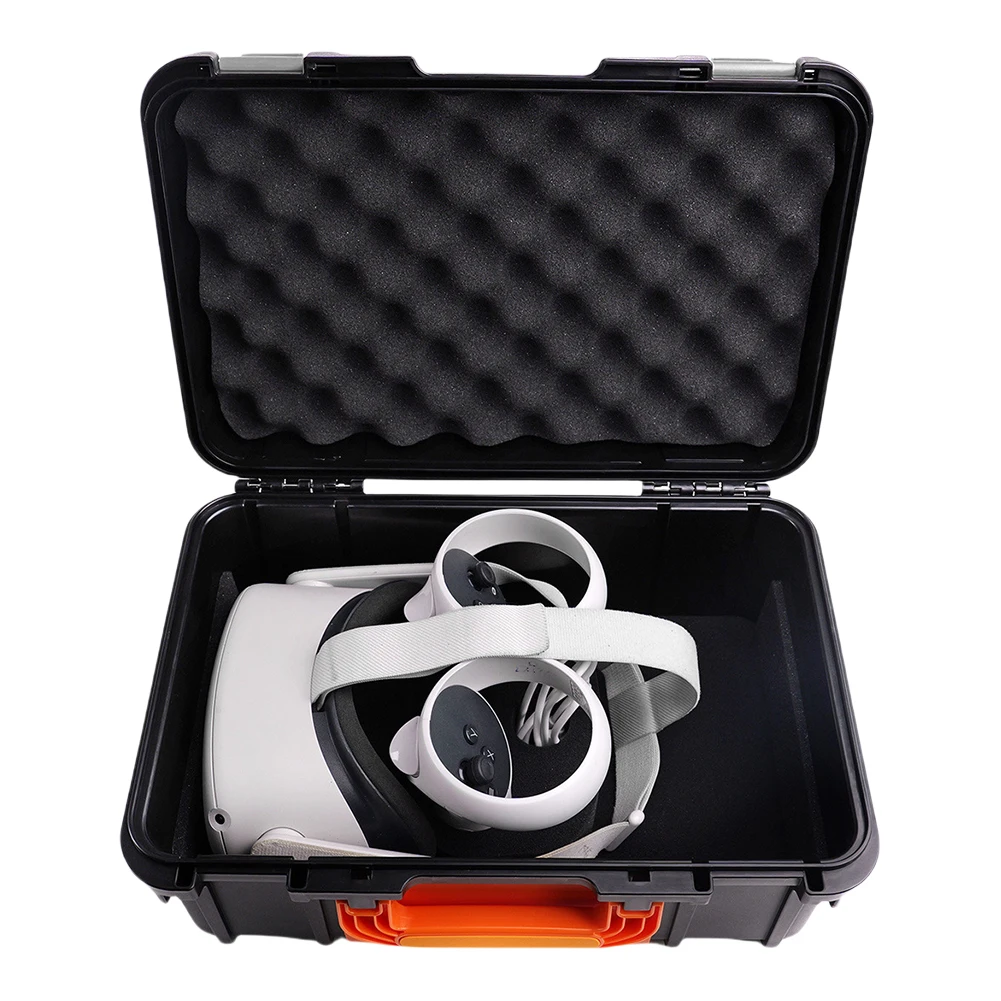 2. Premium Materials: Crafted from high-quality ABS material, the Travel Storage Bag is wear-resistant, impact-resistant, and drop-proof. The foam interior and elastic sponge pad in the lid provide comprehensive shock protection for your VR equipment.