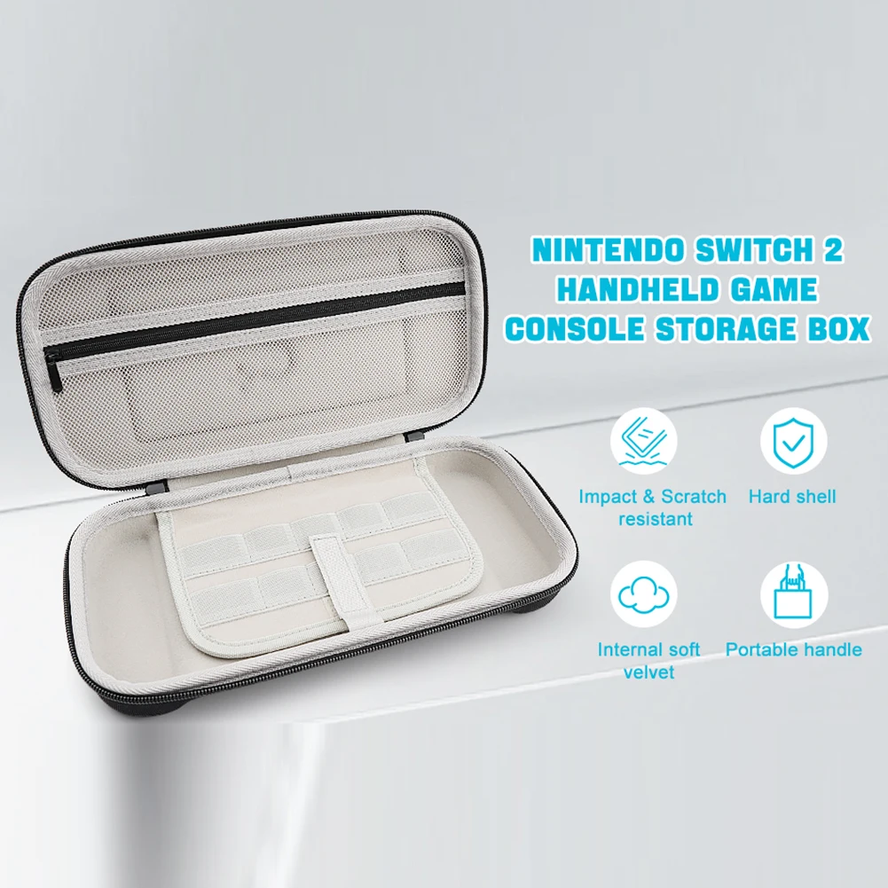 Estuche rígido de EVA para Switch 2 Bolsa de almacenamiento portátil Estuche para consolas de juegos a prueba de golpes Bolsa de viaje protectora antiarañazos con bolsillos de malla y soporte para tarjetas de juego para consola de juegos portátil Switch 2