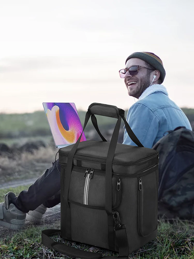 2.Múltiples bolsillos:Además del compartimento principal de energía, el divisor superior de la bolsa de transporte de viaje incluye un bolsillo de malla grande, dos bolsillos laterales y un bolsillo frontal para guardar cómodamente cables de carga, adaptadores, cargadores u otros accesorios.