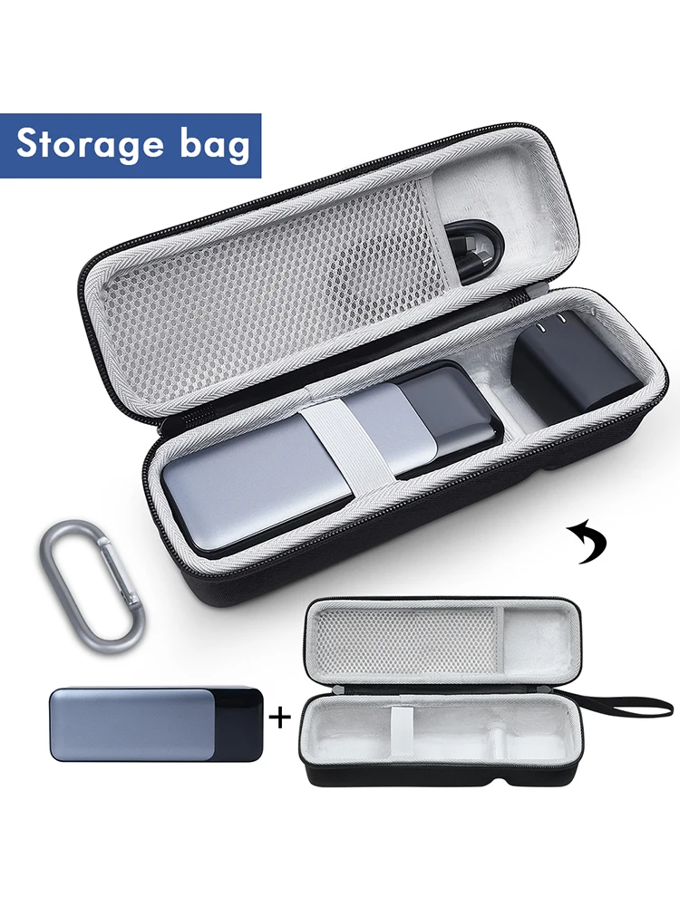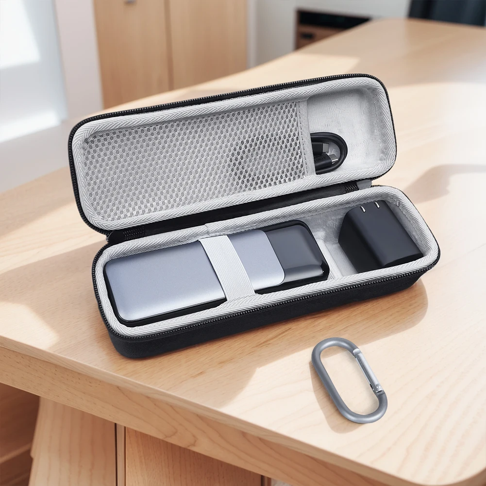 Característica:1. Diseñado a medida para la comodidad:Para2. Material Premium para máxima protección:Fabricado con material EVA duradero y duro, la funda protectora de viaje ofrece capacidades impermeables, a prueba de golpes, a prueba de polvo y anticaída. Cuenta con una excelente resistencia a la compresión y absorbe eficazmente los impactos. El interior está forrado con terciopelo suave e incluye correas de seguridad, evitando arañazos, daños y suciedad, asegurando que su dispositivo esté completamente protegido.3. Diseño ergonómico y portátil:Equipado con una cómoda correa de mano y un cómodo mosquetón, el estuche de viaje duro está diseñado ergonómicamente para proporcionar un agarre cómodo. El mosquetón permite un fácil transporte y fijación a su mochila, por lo que es perfecto para su uso en movimiento sin sacrificar la durabilidad o las propiedades ligeras.4. Características prácticas para un fácil acceso:La funda de protección combina una carcasa ligera pero resistente con un diseño de doble cremallera, lo que permite una fácil apertura y cierre. Esto asegura que su banco de energía y sus accesorios sean accesibles mientras mantienen la durabilidad a largo plazo y la resistencia a la rotura. Su tamaño compacto es ideal para minimizar el uso del espacio sin comprometer la protección o la accesibilidad.5. Versátil y compacto para el uso diario:El estuche rígido de almacenamiento está diseñado por expertos para satisfacer sus necesidades de carga en varias configuraciones, ya sea al aire libre o en casa. Su diseño compacto y duradero hace que sea increíblemente fácil de transportar y usar, asegurando que su banco de energía permanezca limpio y protegido de la acumulación de polvo cuando no esté en uso.Especificación:Origen: China continentalTipo de artículo: BolsasColor: negro