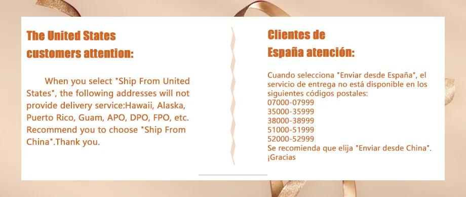 ![]() 1. Envío Mundial. (Excepto algunos países y APO/FPO)2. Los pedidos se procesan a tiempo después de la verificación de pago. 3. Solo enviamos a direcciones de pedido confirmadas. Tu dirección del pedido debe coincidir con tu dirección de envío. 4. Las imágenes mostradas no son el artículo real y son solo para su referencia. 5. El tiempo de tránsito del servicio es proporcionado por el transportista y excluye fines de semana y días festivos. El tiempo de tránsito puede variar, especialmente durante la temporada de vacaciones. 6. Si no has recibido tu pedido después de 30 días desde el pago, contáctanos. Rastrearemos tu pedido y nos pondremos en contacto contigo lo antes posible. ¡Nuestro objetivo es la satisfacción del cliente! 7. Tiempo de entrega: ![]() 1. Tiene 7 días para contactarnos y 30 días para devolverlo a partir de la fecha de recepción. Si te quedas el artículo durante más de 7 días, se considerará usado y no te ofreceremos un reembolso o reemplazo. ¡NO hay excepciones!Los gastos de envío corren por cuenta del vendedor y del comprador a la mitad. 2. Todos los artículos devueltos deben estar en el empaquetado original y debes proporcionarnos el número de seguimiento del envío, el motivo específico de la devolución y tu ID de pedido. 3. Reembolsaremos la cantidad completa de la oferta ganadora, una vez recibido el artículo en su estado original y embalaje con todos los componentes y accesorios incluidos, después de que tanto el comprador como el vendedor cancelen la transacción de aliexpress. O puedes optar por un reemplazo. 4. Pagaremos todo el costo de envío si el producto (s) no es como se anunció. Los artículos defectuosos deben ser informados y Devueltos con el embalaje original, si es posible. Debes decirnos cuál es el defecto y darnos tu número de pedido.¡Al realizar un pedido en aliexpress aceptas todas las políticas mencionadas anteriormente! ¡Mantenemos altos estándares de excelencia y nos esforzamos por conseguir una satisfacción del cliente del 100 %! Los comentarios son muy importantes. Le rogamos que se ponga en contacto con nosotros inmediatamente antes de darnos un comentario neutral o negativo, para que podamos satisfacer sus necesidades.¡Es imposible abordar problemas si no los conocemos! |