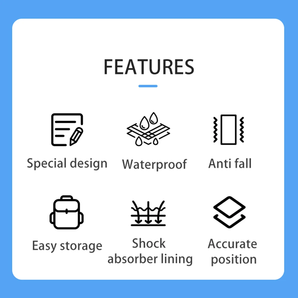 2. Material de calidad superior:Hecha de EVA de alta calidad y cuero lujoso, la bolsa de almacenamiento es duradera, resistente al agua, a prueba de golpes y al polvo. Ofrece una excelente absorción de impactos para proteger su equipo de caídas y presión.