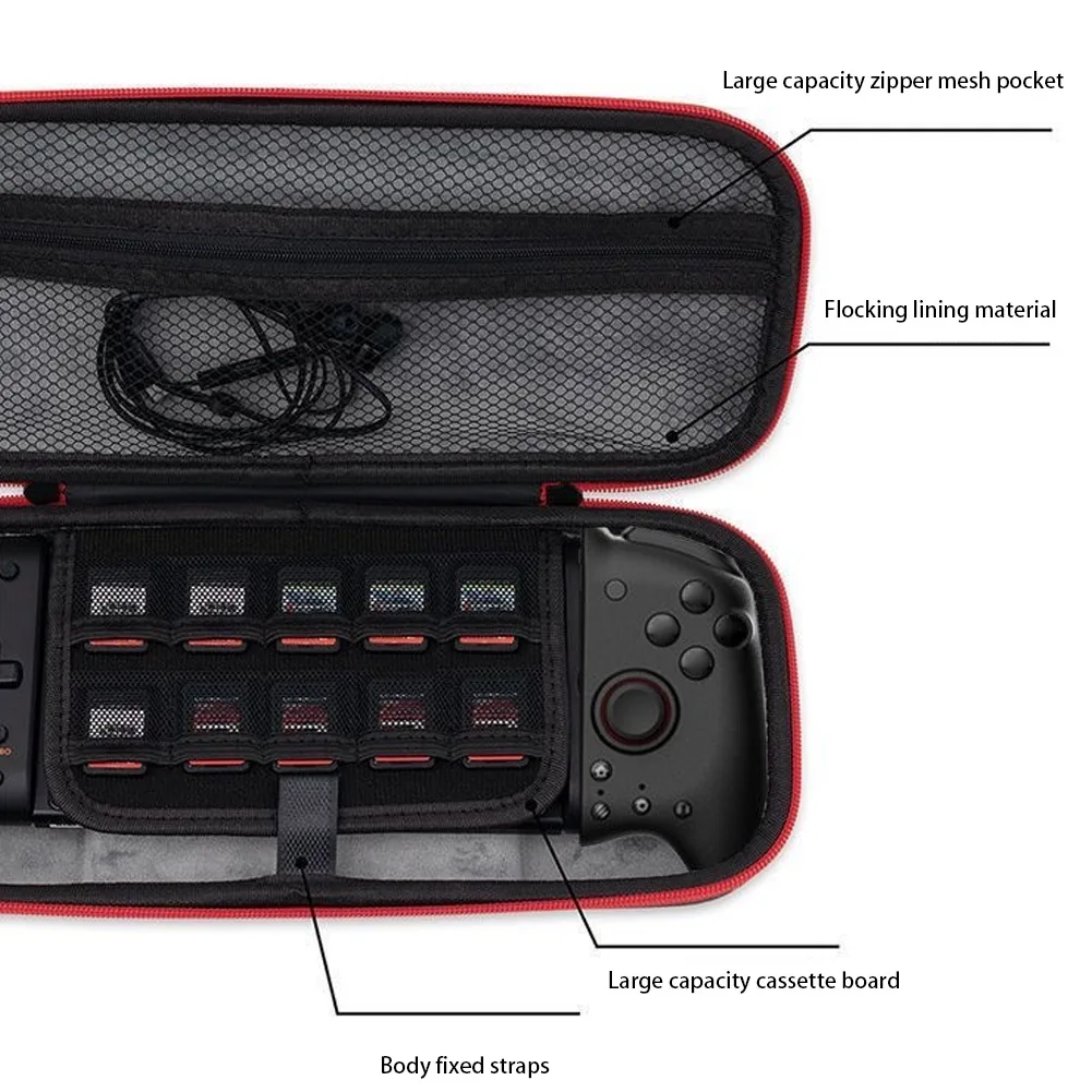 5. Bolsillo interno de malla:La carcasa dura incluye un bolsillo de malla interno para almacenar ordenadamente todos sus accesorios esenciales para juegos, como cables de carga y tarjetas de almacenamiento, manteniendo todo organizado y en su lugar.