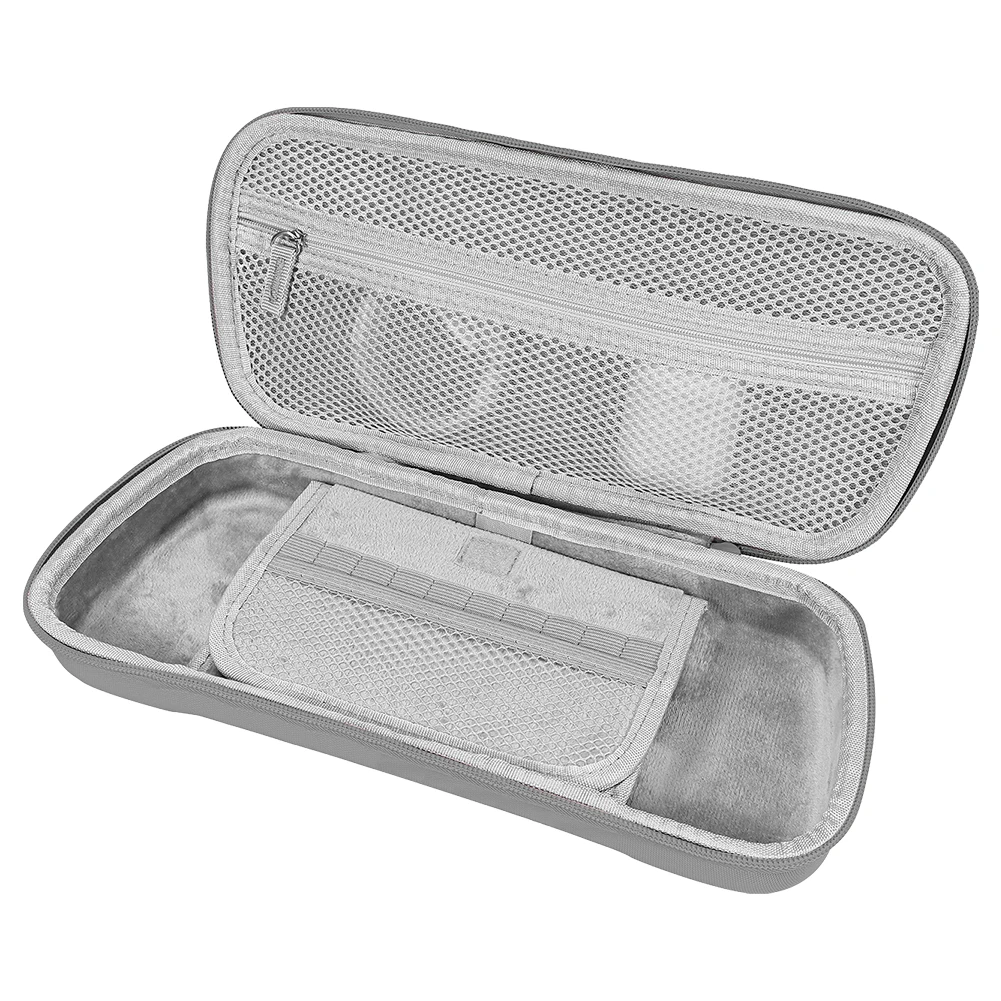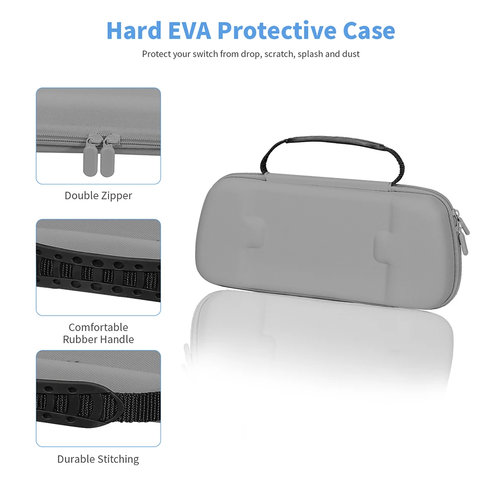 5.Acolchado interno seguro:El bolso con cremallera cuenta con un acolchado interno que asegura y protege la pantalla de su consola de juegos.La sección inferior elevada se adapta a la curvatura posterior del dispositivo portátil, y los bolsillos de malla adicionales, las ranuras para cargador y las ranuras para tarjetas independientes ofrecen un amplio espacio para almacenar cargadores, cables y tarjetas de juego.