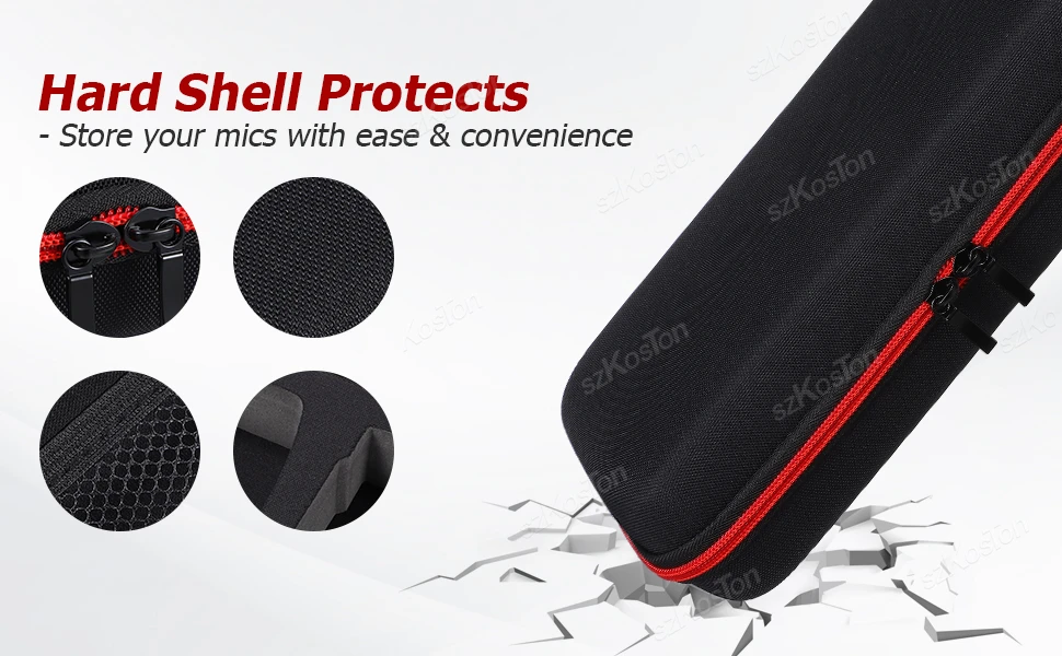 Protección rígida: nuestra funda para micrófono también cuenta con un bolsillo de malla incorporado para guardar otros accesorios y un práctico diseño de cremallera para un fácil acceso.Y con sus materiales resistentes a la compresión, a los golpes e impermeables, puede estar seguro de que sus micrófonos y accesorios permanecerán seguros y protegidos.Szkoston