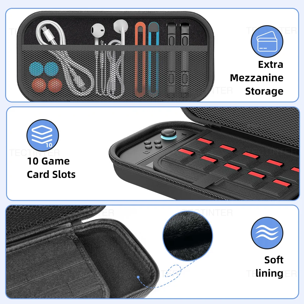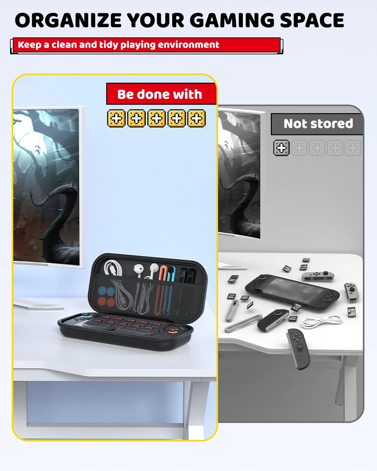El estuche está hecho de una resistente carcasa dura de EVA, diseñada para resistir golpes y presiones, brindando una protección superior para el Switch 2. El estuche de transporte garantiza que su dispositivo permanezca a salvo de caídas y golpes accidentales, y lo protege del agua, rayones e impactos.La durabilidad general del estuche de viaje le brinda tranquilidad dondequiera que vaya.