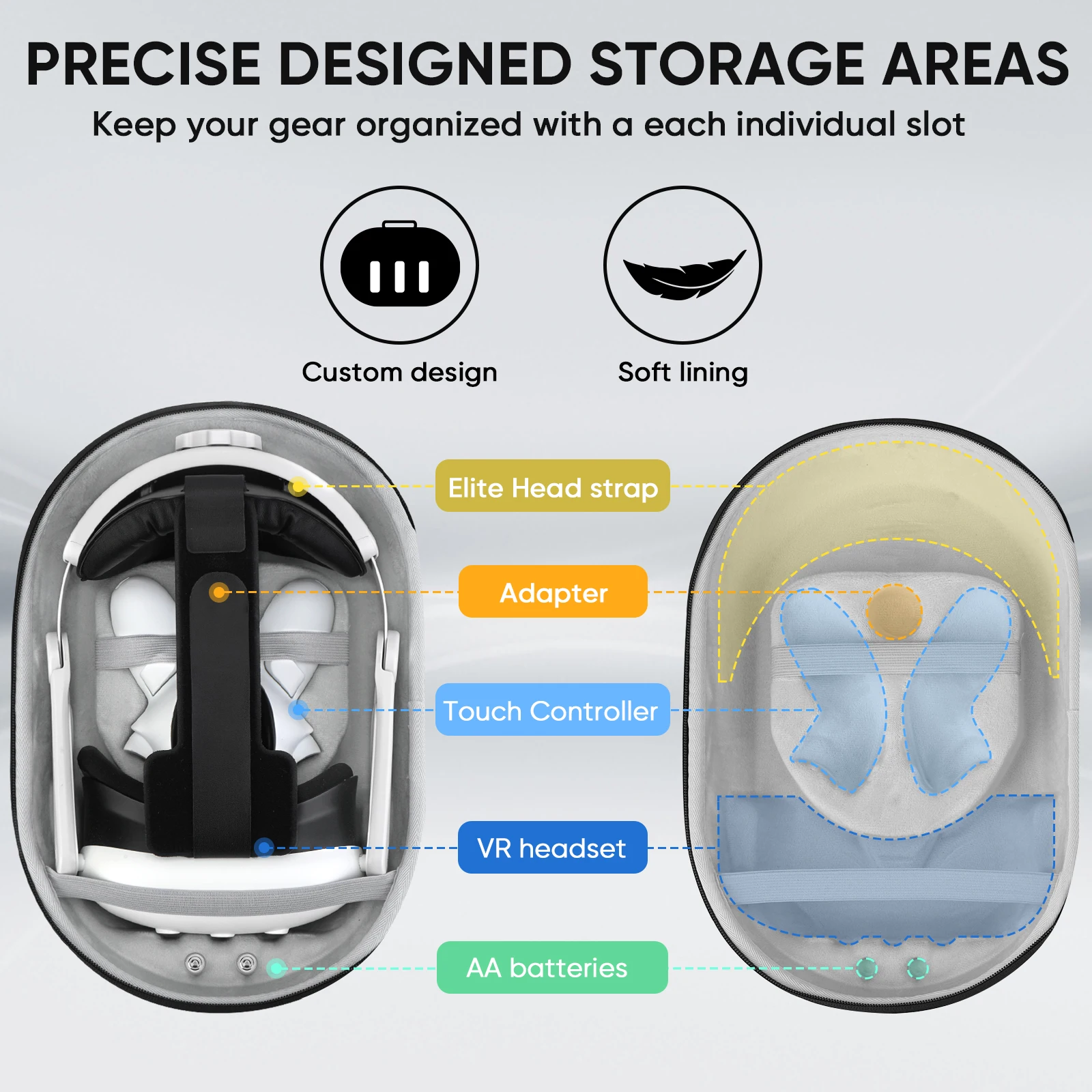 TENGA EN CUENTA: El estuche de transporte se adapta a la correa de élite original oficial con batería y a todas las correas para la cabeza de terceros, marcas como BO/BO-VR y diseño KI*WI. Estamos comprometidos a brindarle el viaje perfecto de la realidad virtual. Si no está satisfecho, comuníquese con nosotros a tiempo para devolverlo o reembolsarlo.