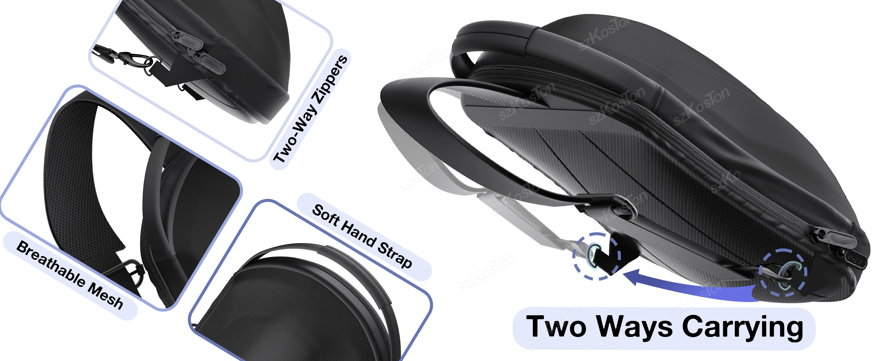 Compatible con Meta Quest 3S/Quest 3/Quest 2/Vision Pro/Pico4/Pico4 Ultra Acerca de este artículo 1. Compatibilidad universal con auriculares Quest 3S/Quest 3 VR: este estuche rígido está diseñado para acomodar fácilmente todos los auriculares compatibles (Nota: incluidas las versiones originales o de élite y cualquier correa para la cabeza de menos de 16 cm) 2. Almacenamiento organizado: el interior de la bolsa de hombro de almacenamiento cuenta con bolsillos de malla y compartimentos separados para guardar ordenadamente controladores, cables, cargadores y otros accesorios 3. Transpirable y cómodo: la parte posterior y las correas de este estuche de transporte están hechas de un material de malla y esponja, lo que brinda suavidad sin calor, lo que garantiza comodidad para su espalda. 4.Protección contra impactos: la parte frontal del bolso cruzado está hecha de material EVA, lo que proporciona una carcasa dura que protege sus auriculares VR de impactos accidentales.Szkoston 5. Correa ajustable (derecha o izquierda): puede ajustar la dirección de la correa usando las hebillas de metal en ambos lados de la parte inferior de la mochila para adaptarse mejor a sus hábitos de mochilero. 6. Detalles humanizados: el asa superior de la bolsa de hombro de almacenamiento es compacta y práctica, lo que facilita su transporte y suspensión diarios.