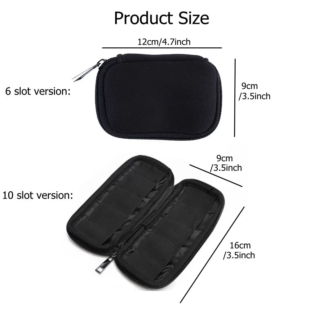 1.Bolsa blanda con 6 o 10 ranuras.Fácil de guardar en los bolsillos, compacto y cómodo de transportar, protegiendo sus unidades USB, pequeños adaptadores, auriculares y llaves.