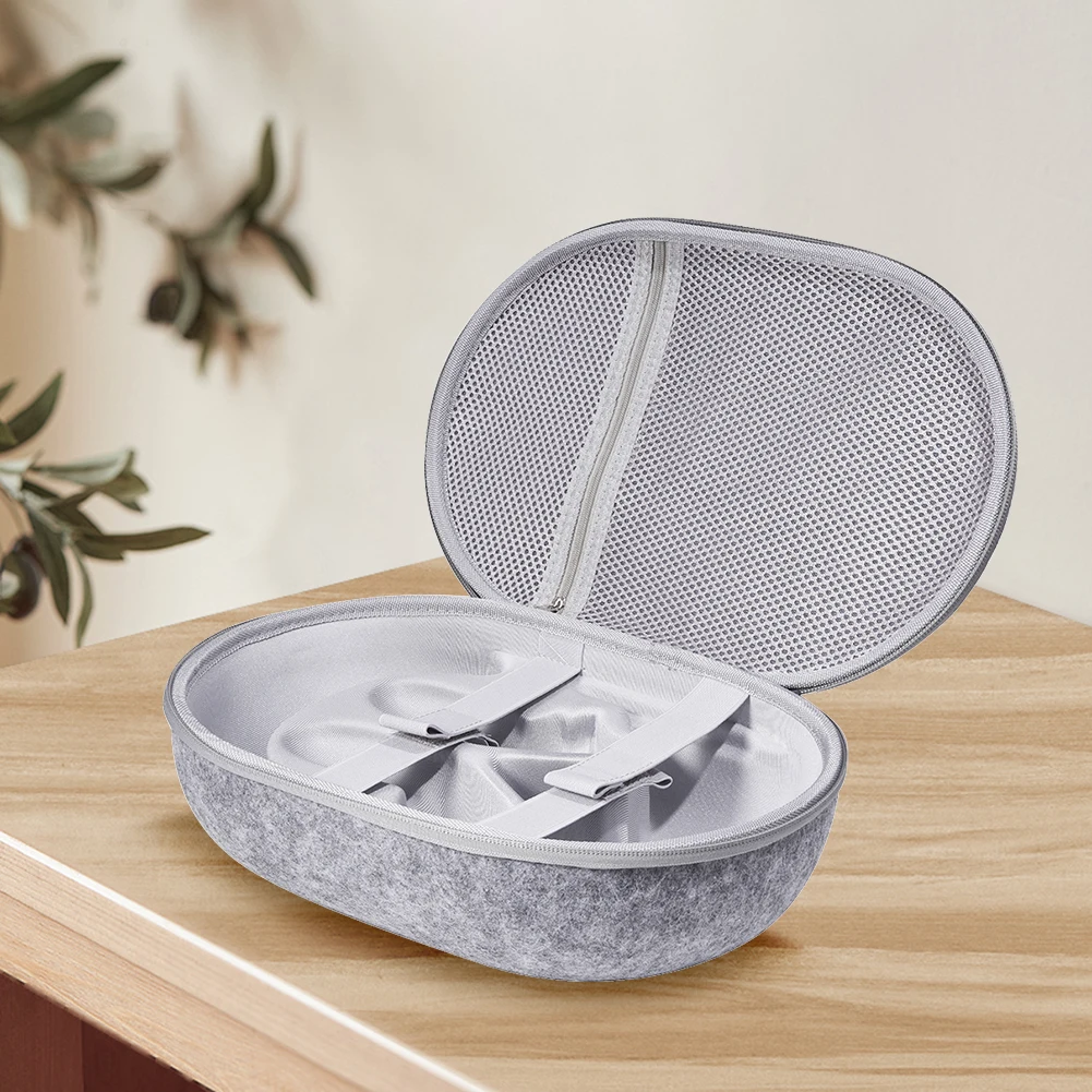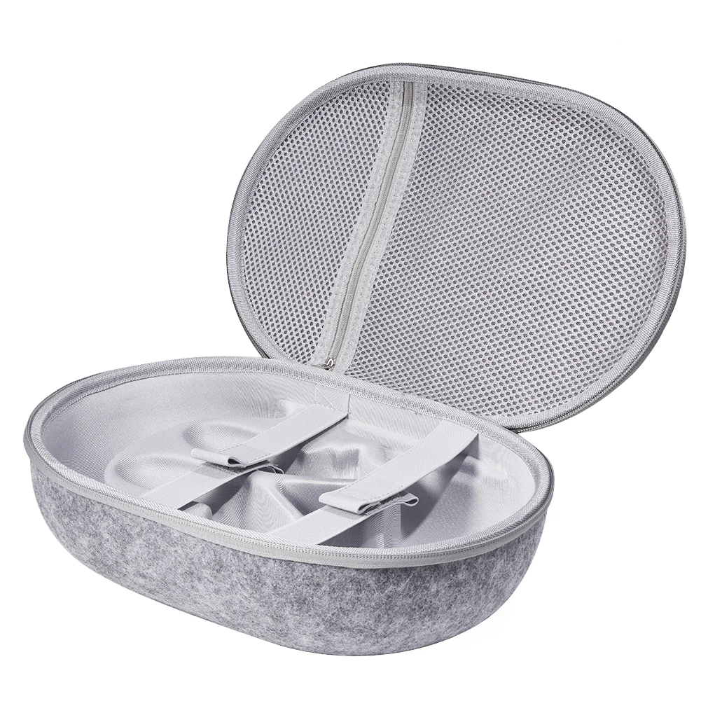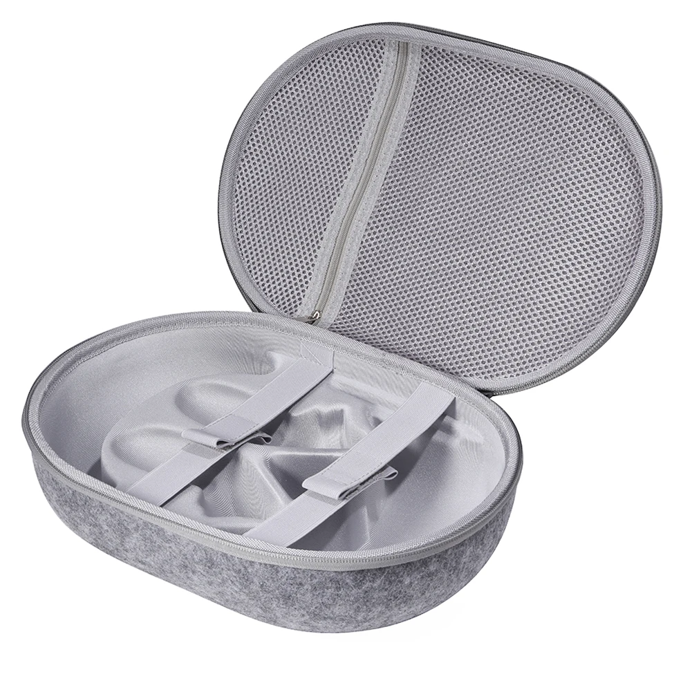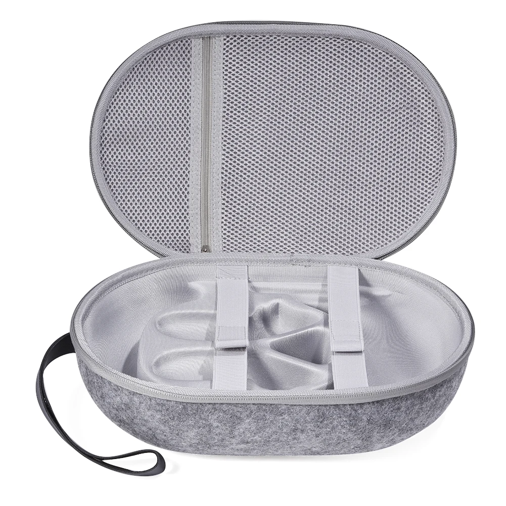 4. Ranuras de almacenamiento personalizadas:El interior de la carcasa dura cuenta con particiones gruesas con correas seguras, separando los auriculares VR de los controladores para evitar roces y temblores. Un bolsillo de malla con cremallera adicional es ideal para almacenar pequeños accesorios como cargadores y cables, asegurando la estabilidad durante el transporte.