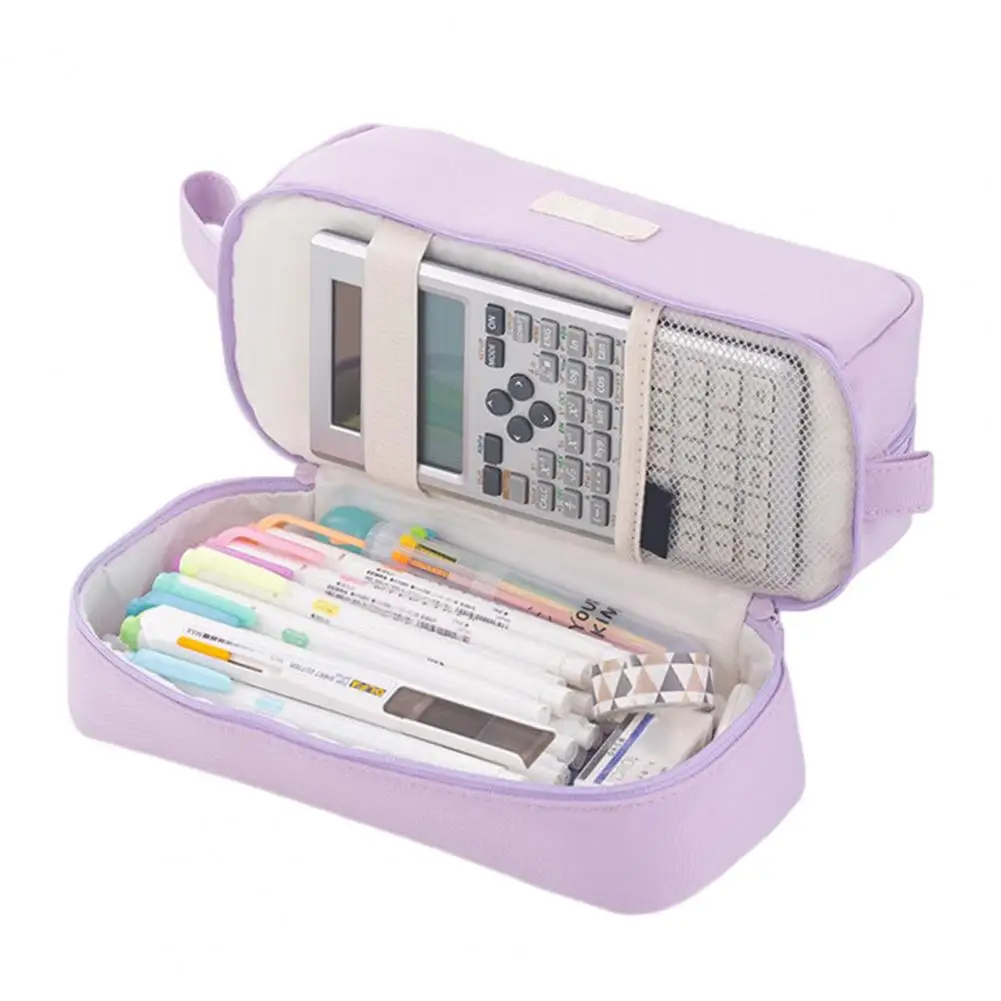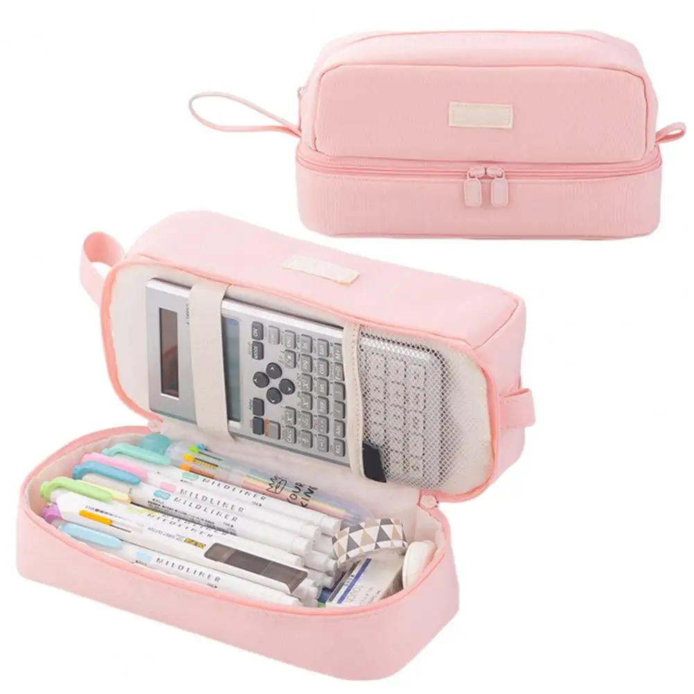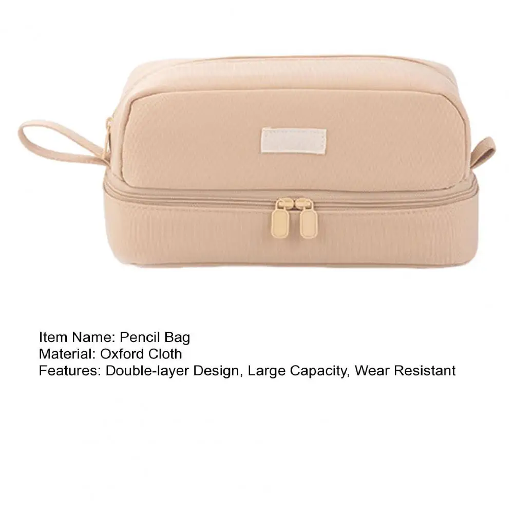 Estuche para lápices con cremallera de doble capa de gran capacidad resistente al desgaste estuche organizador bolígrafo soporte para brochas de maquillaje