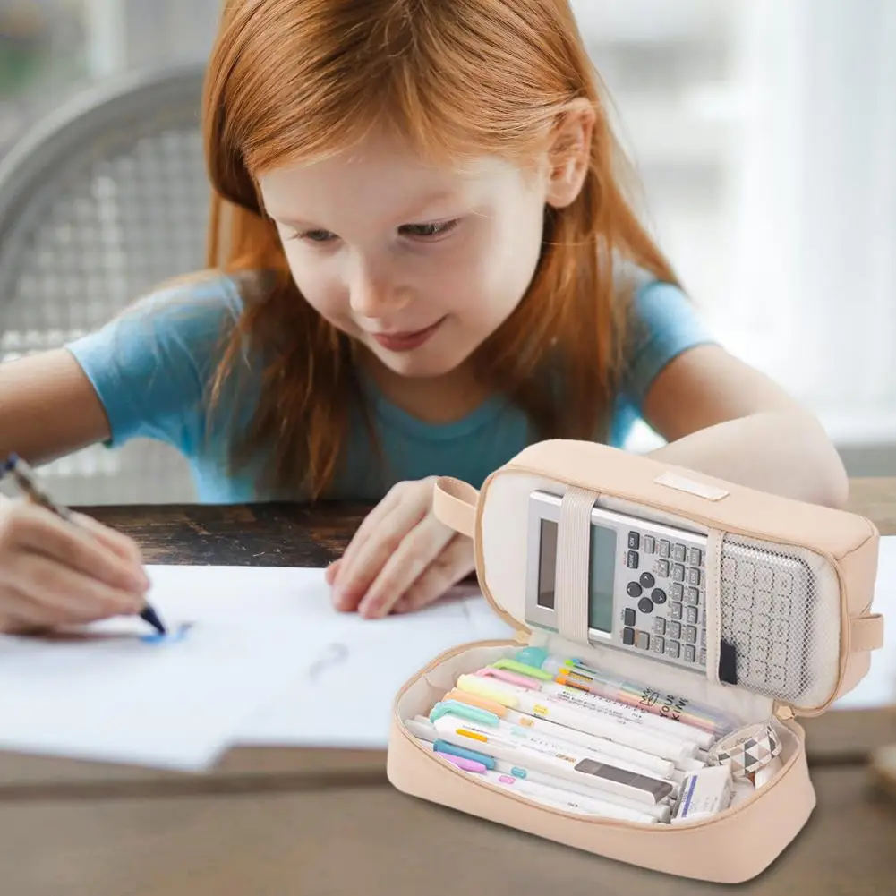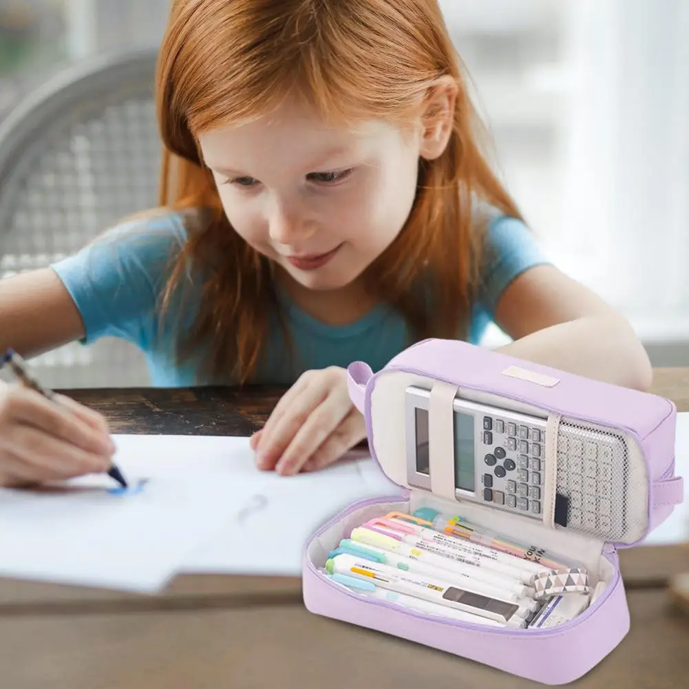 A diferencia de otros productos similares, nuestra bolsa para bolígrafos adopta un diseño de doble capa y gran capacidad, por lo que puede usarla para almacenar lápices, reglas, tijeras, borradores, cintas, brochas de maquillaje, lápices labiales y varios artículos.