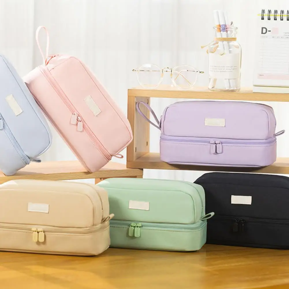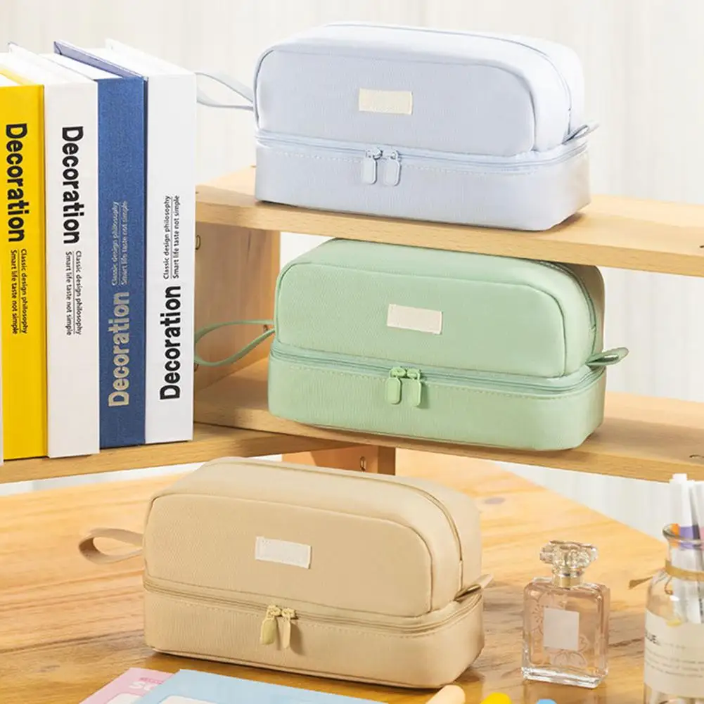 Estuche para lápices con cremallera de doble capa de gran capacidad resistente al desgaste estuche organizador bolígrafo soporte para brochas de maquillaje