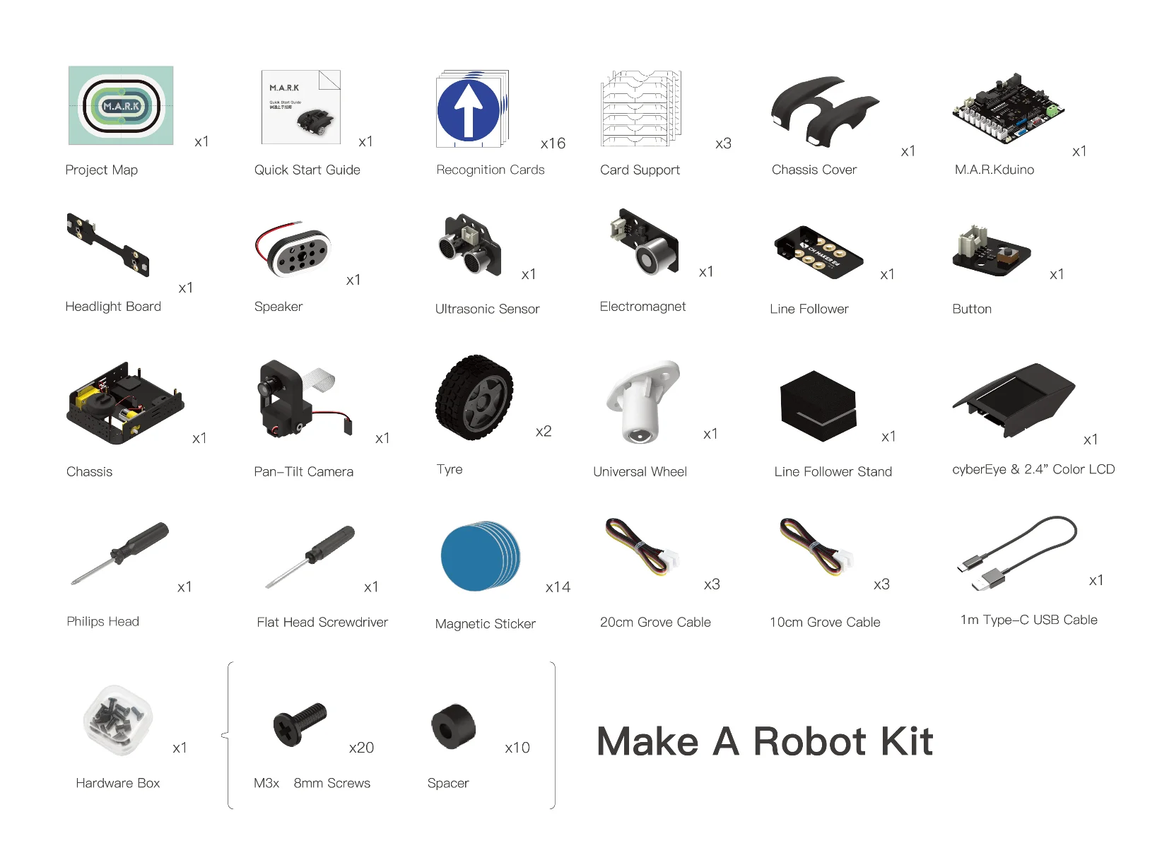 Con la pantalla y la cámara, M.A.R.K.le permite implementar una variedad de proyectos educativos y divertidos relacionados con la robótica, la tecnología de conducción autónoma y la visión por computadora.