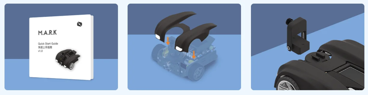 ¡Implemente sus proyectos avanzados y de mapas y cuentos con conducción autónoma o con Mark o utilícelo en competiciones de robótica!MARK está diseñado en forma de automóvil, por lo que precargaremos el código que le permitirá implementar la funcionalidad básica del automóvil de conducción autónoma una vez que todo esté montado y conectado.