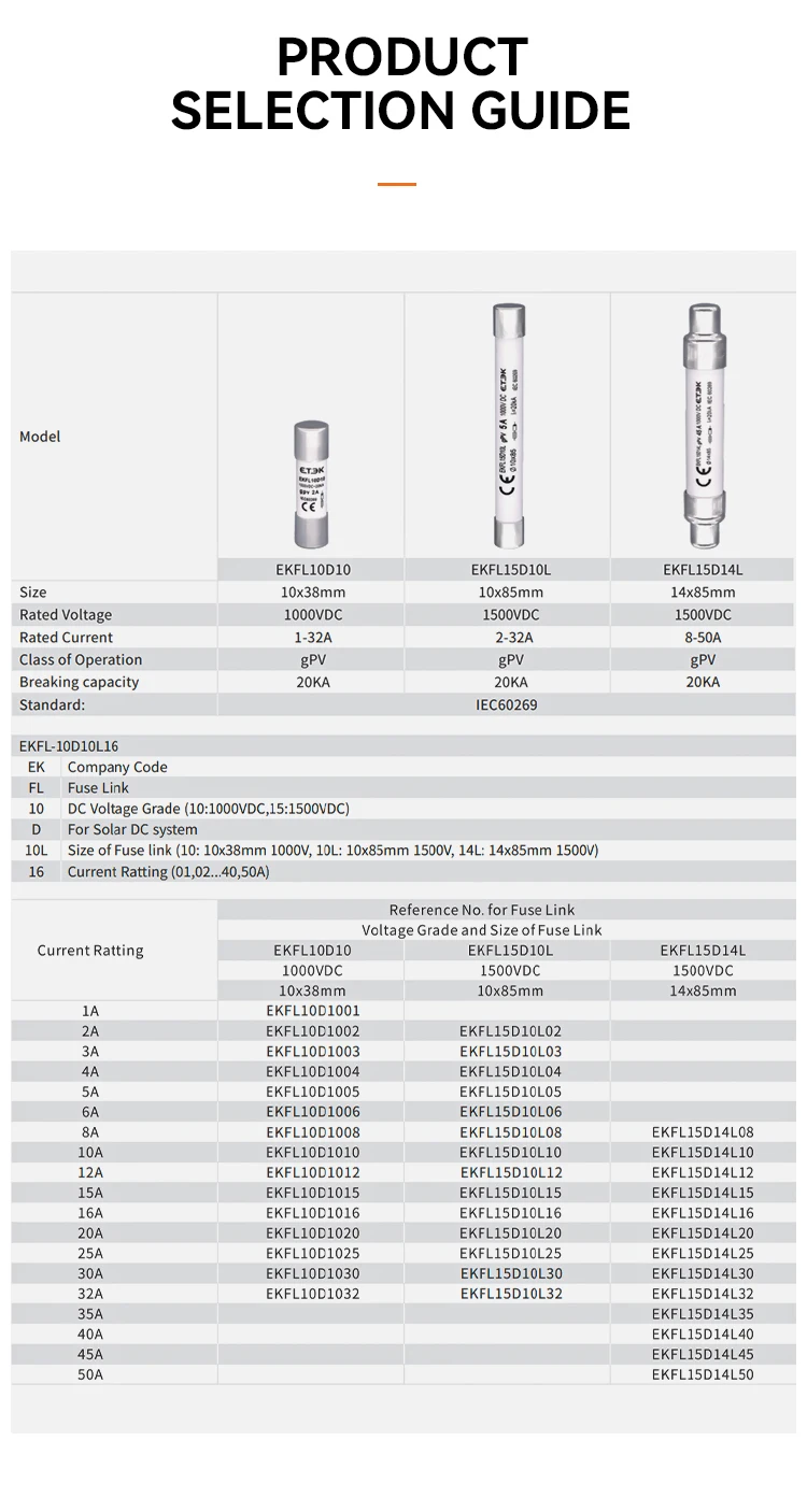 Fusibles de cadena fotovoltaica para paneles solares - 1000 VCC