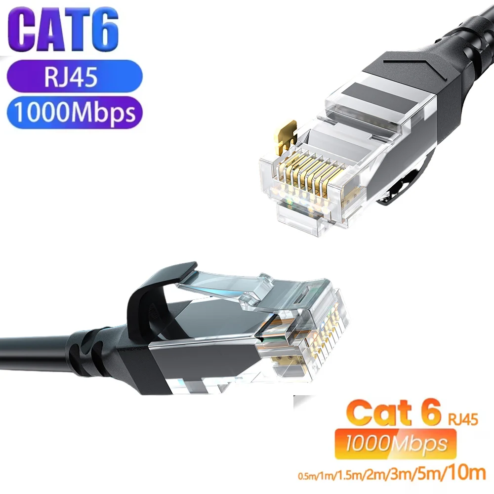 Cable Ethernet Cat6 Gigabit Cable de Internet de alta velocidad de 1000 Mbps Cable LAN RJ45 Red blindada para enrutador portátil PC PS5 Xbox
