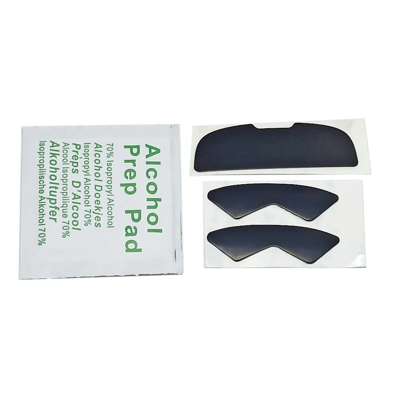 Nota:Este producto es un pie de ratón de repuesto. Después de quitar la pegatina original del pie del ratón, limpie la parte inferior de la cáscara con el algodón de alcohol que se adjunta en el paquete y luego pegue los nuevos pies del ratón.