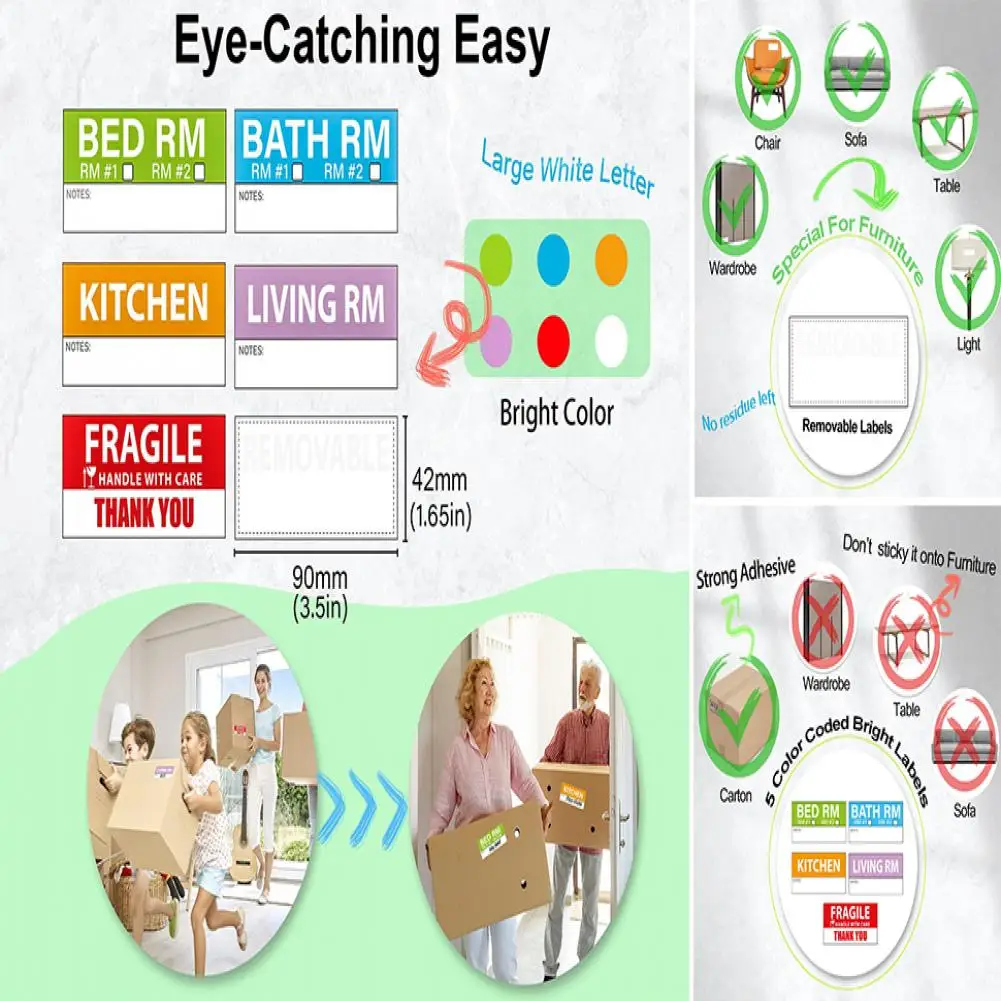 Etiquetas móviles Etiquetas de caja móvil impermeables codificadas por colores Pegatinas pesadas frágiles para embalaje en casa 50 hojas Etiquetas adhesivas extraíbles