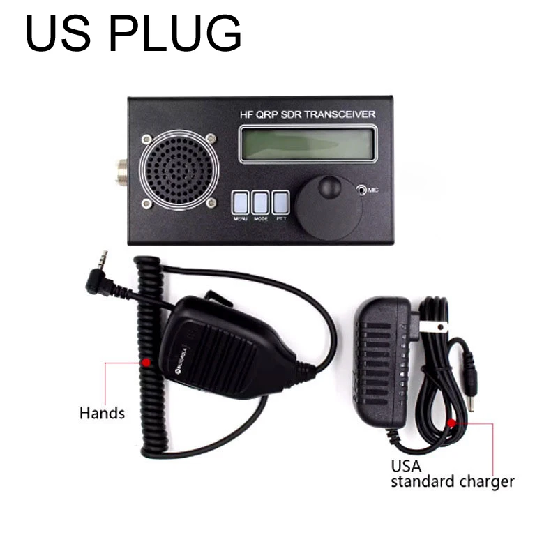 ENCHUFE EUR/EE. UU. USDX 8 bandas SDR todos los modos USB, LSB, CW, AM, FM HF SSB QRP Transceptor QCX-SSB + Mini-ANT 20W QRP Micrófono de antena de onda corta