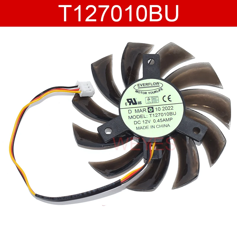 Para ventilador de refrigeración de gráficos Everflow T127010BU DC12V 0.45A 3 líneas enfriador de computadora 7,5 CM nuevo