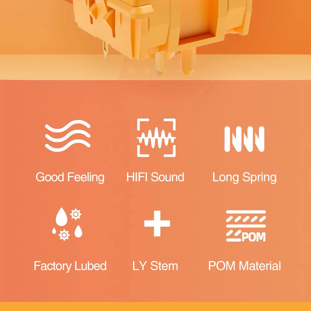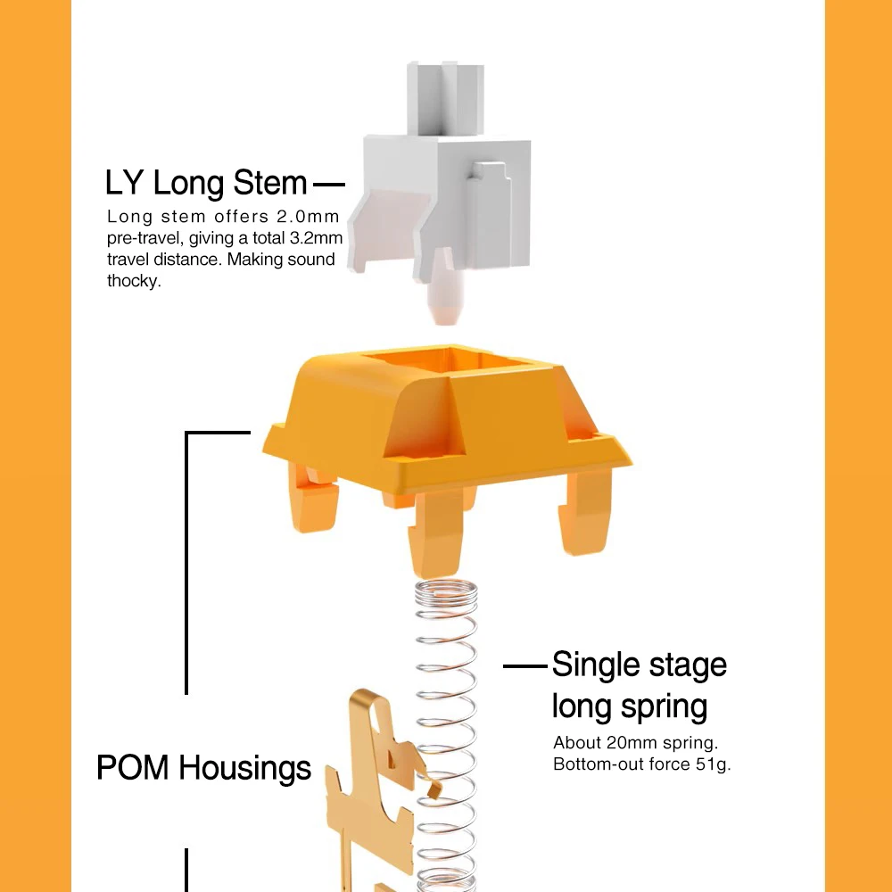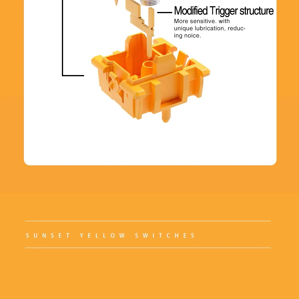 Comprar Everglide BSun Sunset interruptor amarillo RGB SMD, lineal, 51g, para teclado mecánico, eje MX, 5 pines, resorte largo, prelumado