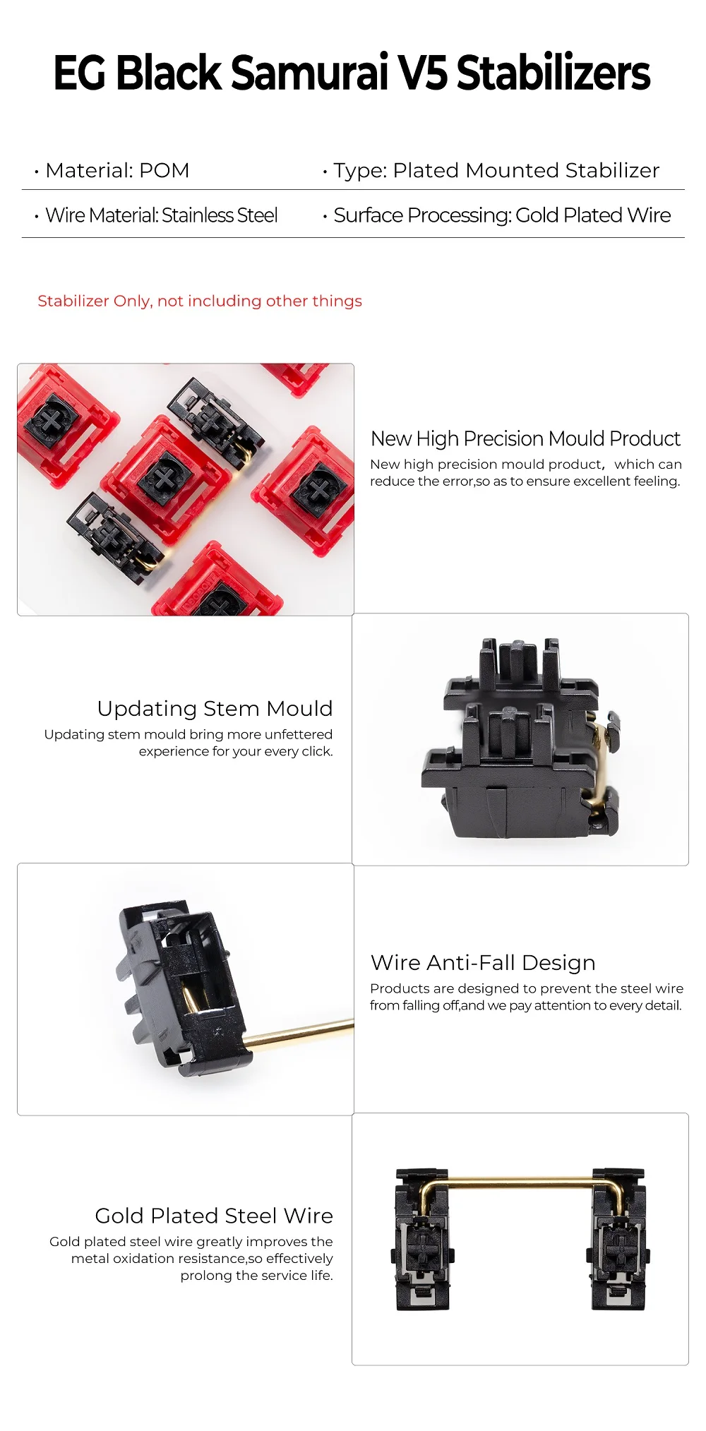 Everglide-estabilizador montado en placa de Panda V5 Black Knight chapado en oro para placa de teclado mecánico personalizada YC66 Zeeyoo 68 Womier