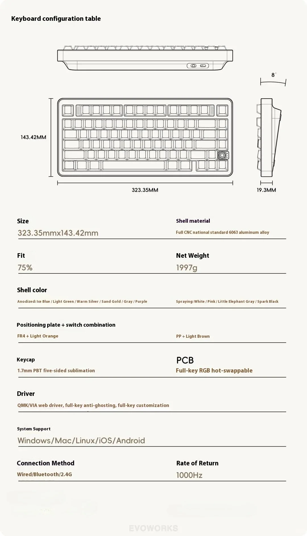 Nombre del producto: Teclado mecánico EVOWORKS EVO75