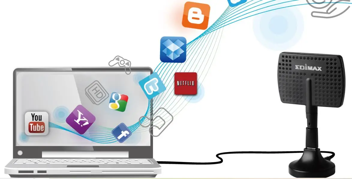 Directional high gain antenna, 4.2dBi (2.4GHz) and 7.1dBi(5GHz), provides high performance long distance wireless connections