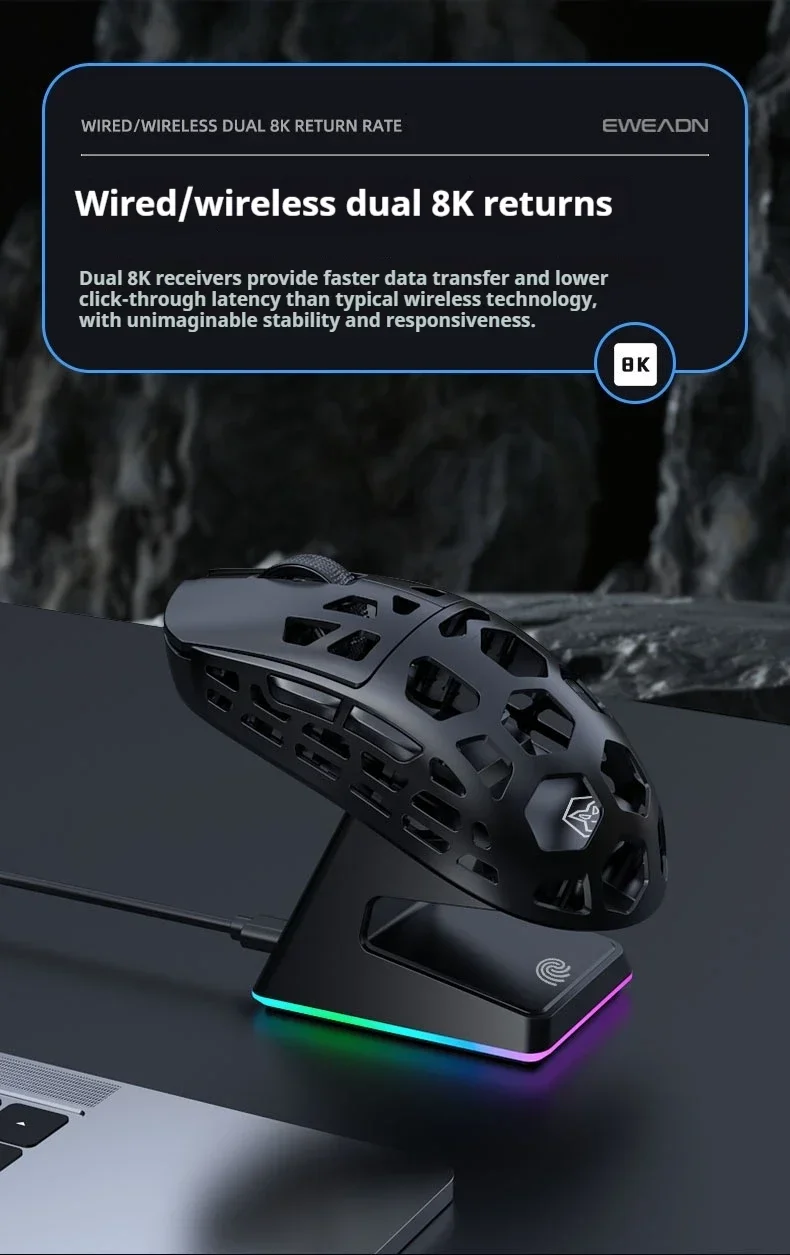 Comprar EWEADN L1 Pro ratón inalámbrico para juegos de aleación de magnesio PAW3395 26KPDI RGB Base de carga táctil magnética ratón para juegos Macro definido