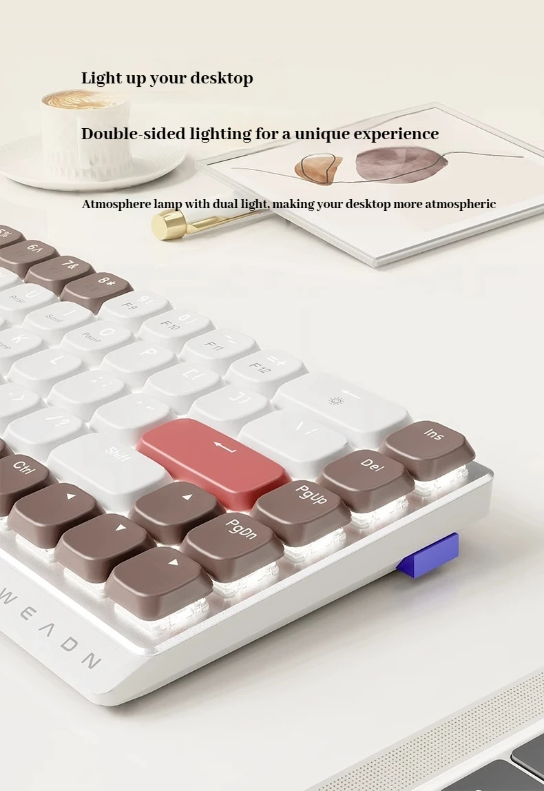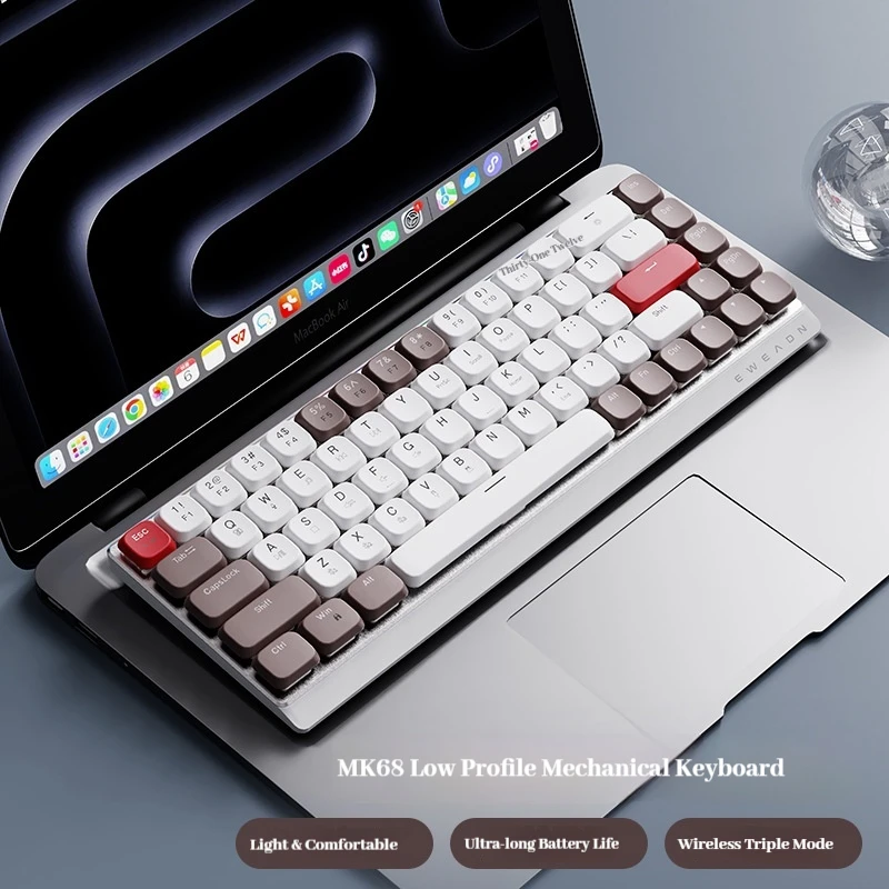 Eweadn Mk68 Teclado mecánico de perfil bajo inalámbrico con cable Bluetooth teclado de tres modos juego de ratón teclado de juego silencioso de oficina
