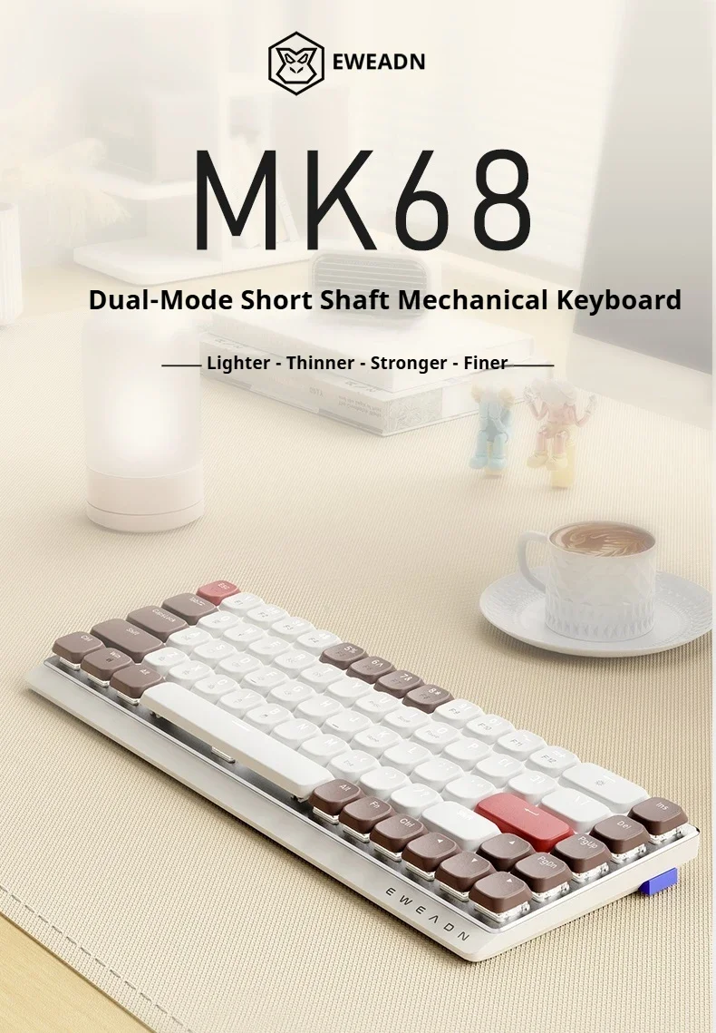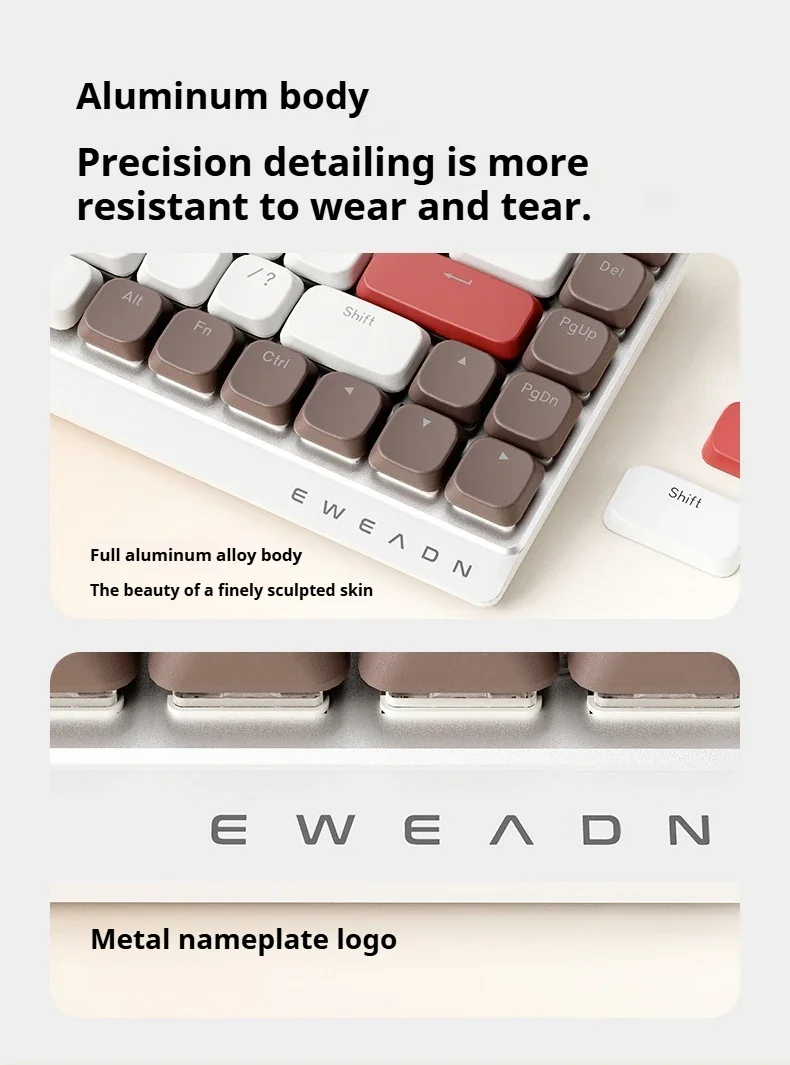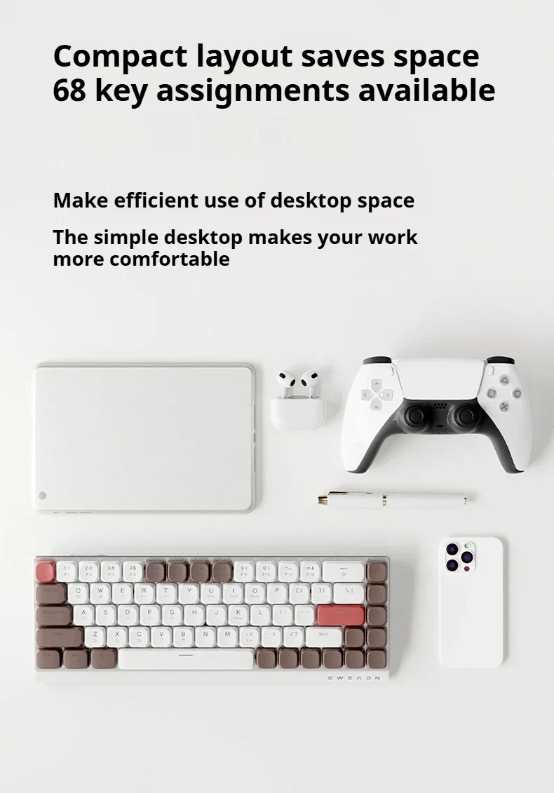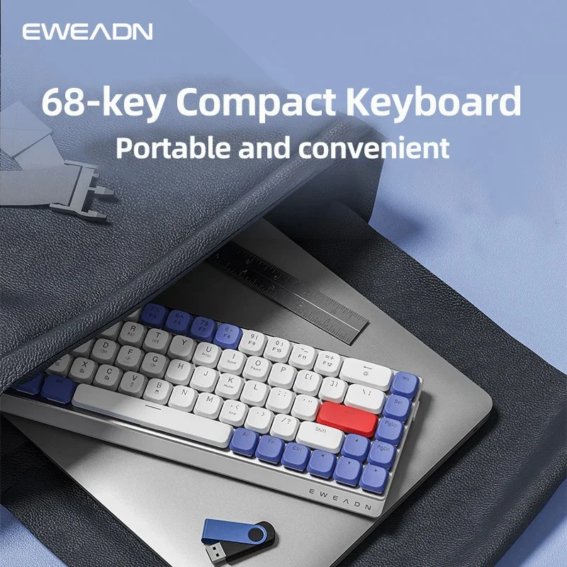 EWEADN MK68 Teclado mecánico de tres modos, teclas PBT de aleación de aluminio, teclado para jugadores de PC para iPad, portátil, de oficina, silencioso