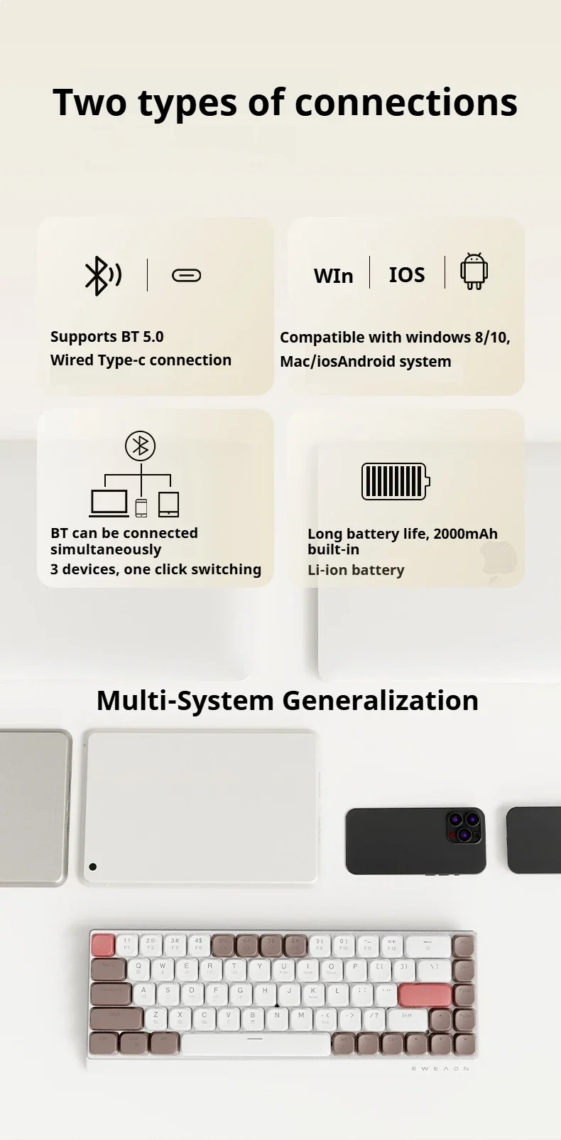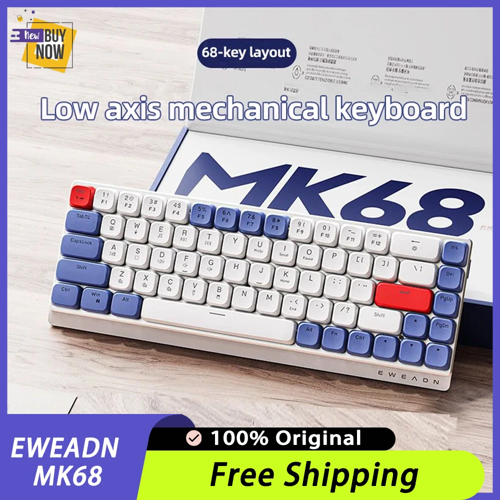 Comprar EWEADN MK68 Teclado mecánico de tres modos, teclas PBT de aleación de aluminio, teclado para jugadores de PC para iPad, portátil, de oficina, silencioso