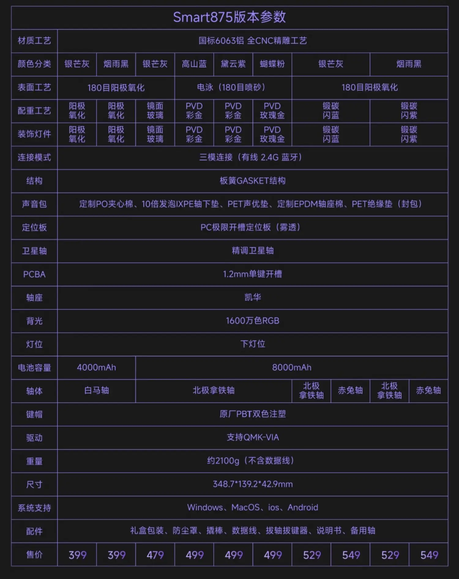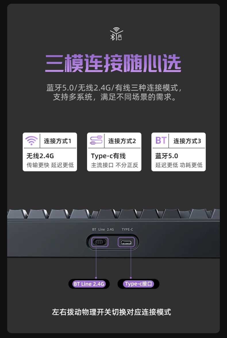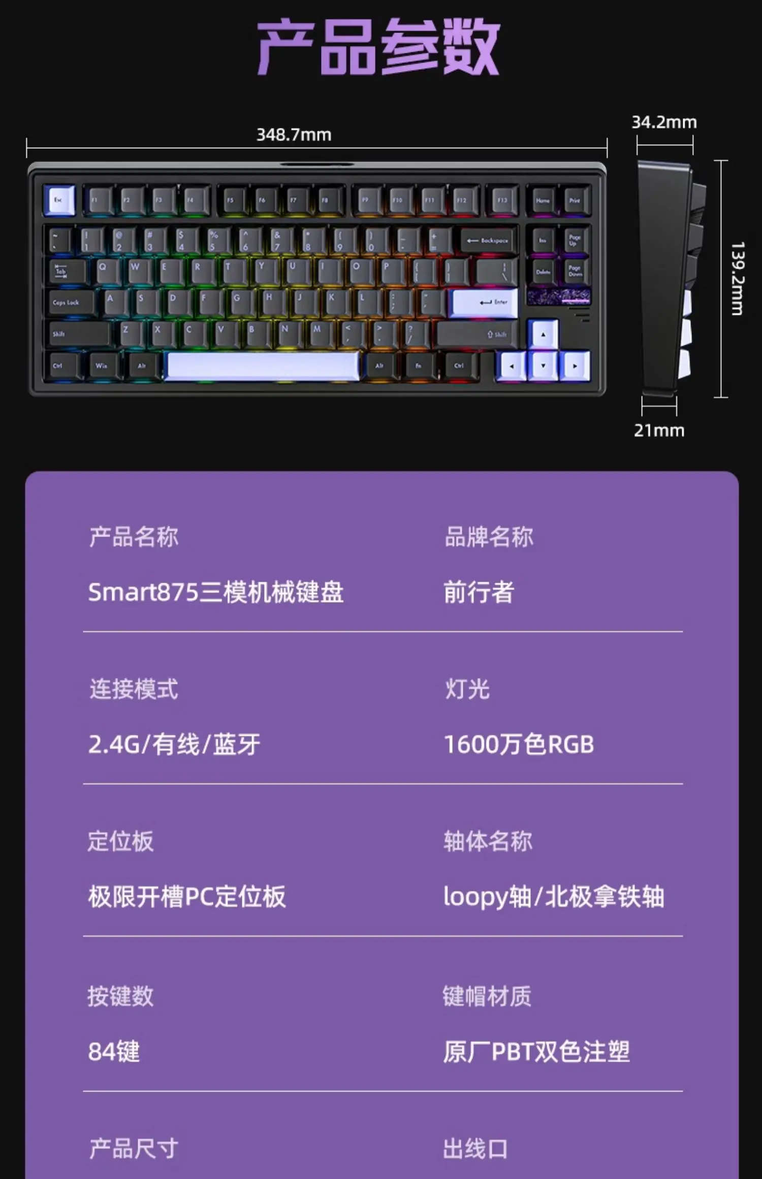 EWEADN Smart875 Three Mode Wireless Mechanical Keyboard RGB Bluetooth Keyboard Gasket PC Gamer E-sports Aluminium Metal Office