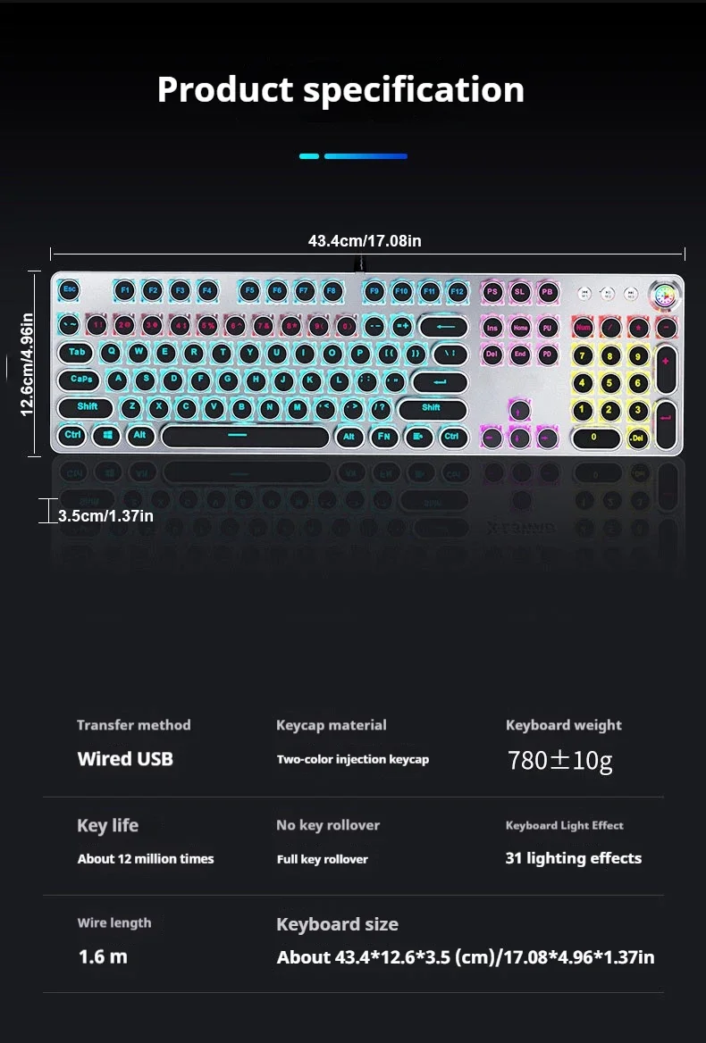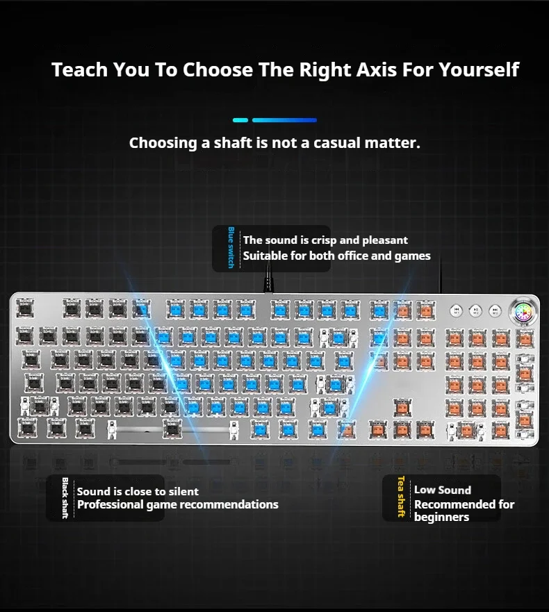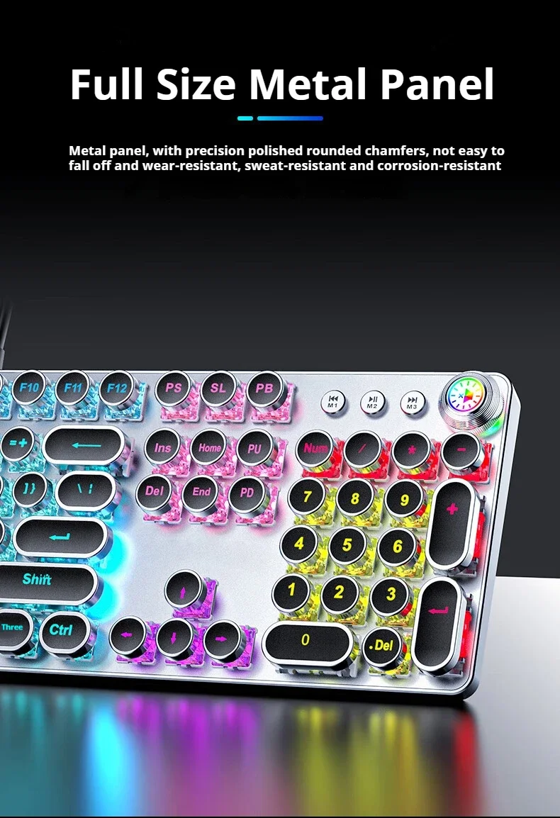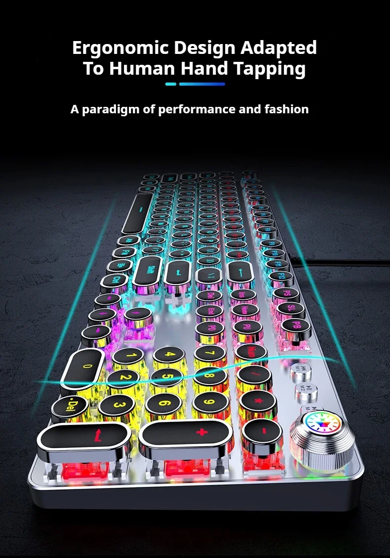 EWEADN-Teclado mecánico Punk, teclas redondas de 104 teclas, retroiluminación LED con perilla Multimedia, teclado para juegos por cable para deportes electrónicos, regalos para PC