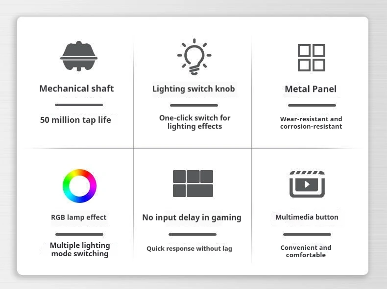 Adopta interruptores de eje mecánicos, con una vida útil de hasta 50 millones de botones, y los botones rebotan fuertemente, sienten plenamente la sensación de golpeteo mecánico y la sensación intensa del juego.