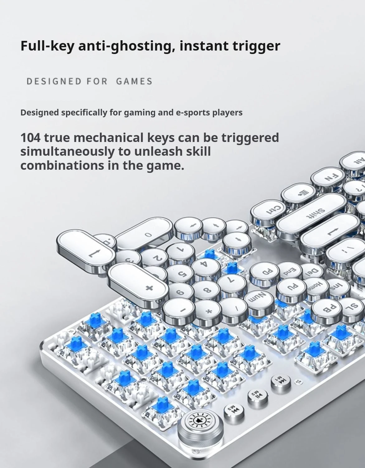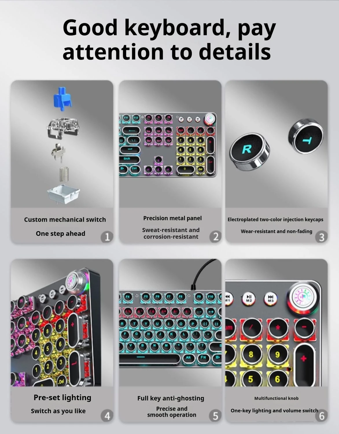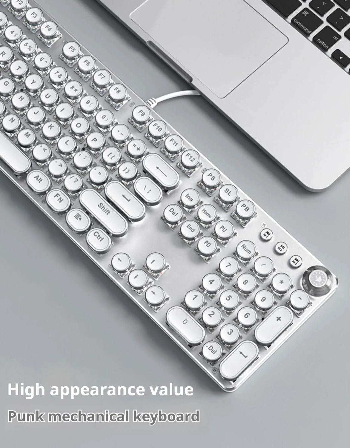 Teclado mecánico Punk Retro TK100, perilla de galvanoplastia, juego de ordenador USB con cable luminoso, eje verde