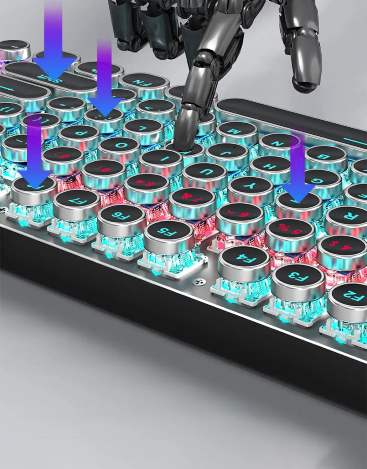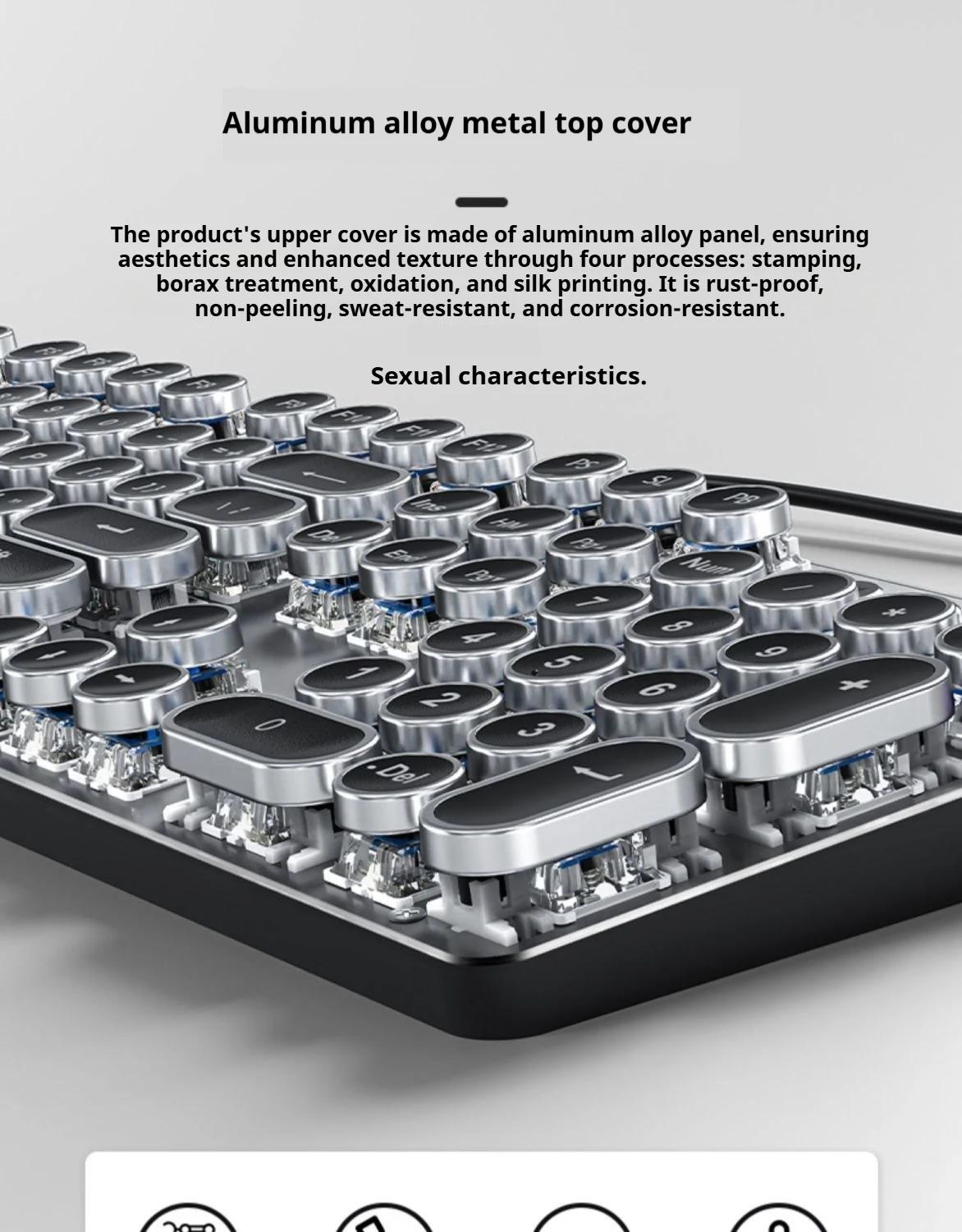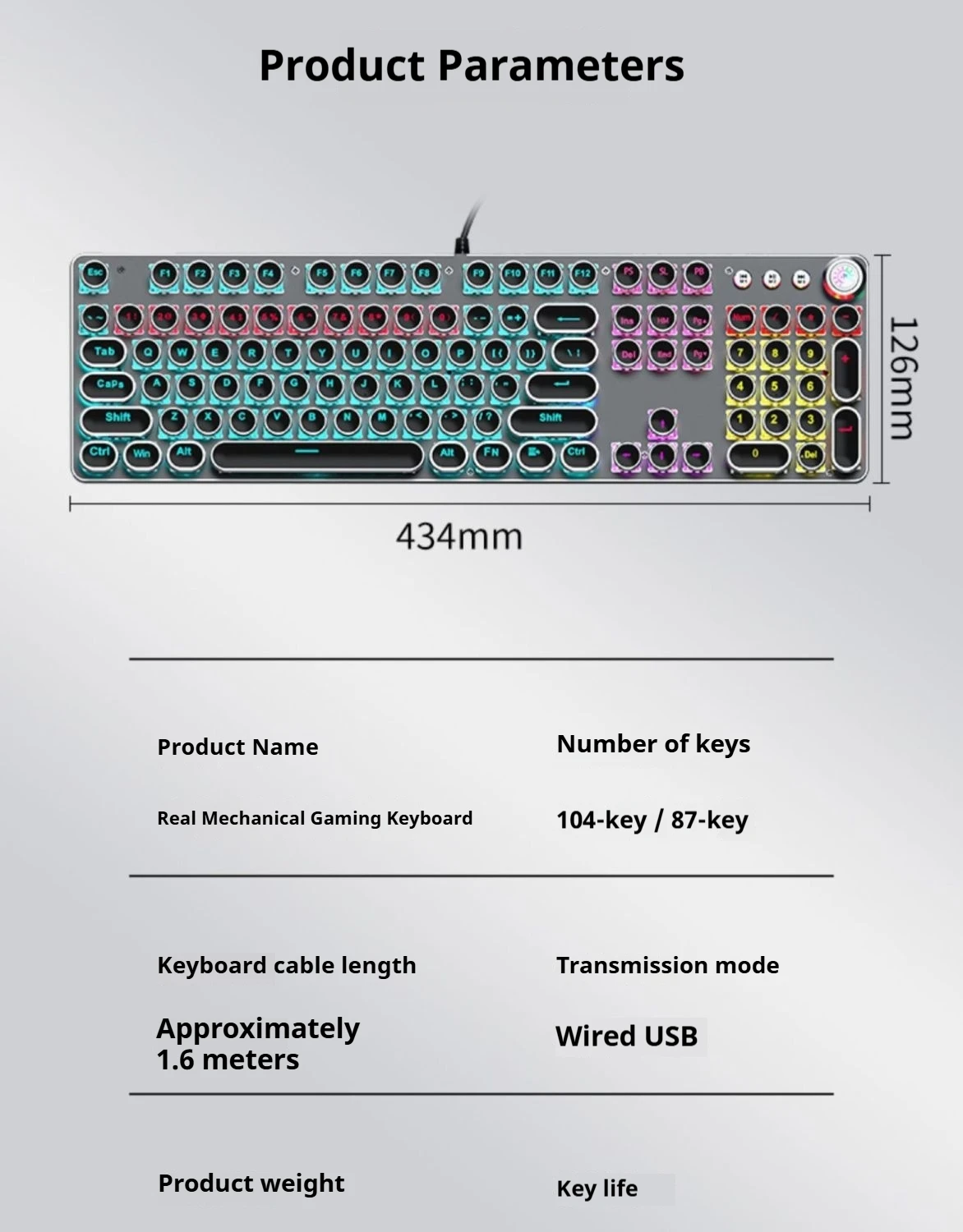 Teclado mecánico Punk Retro TK100, perilla de galvanoplastia, juego de ordenador USB con cable luminoso, eje verde