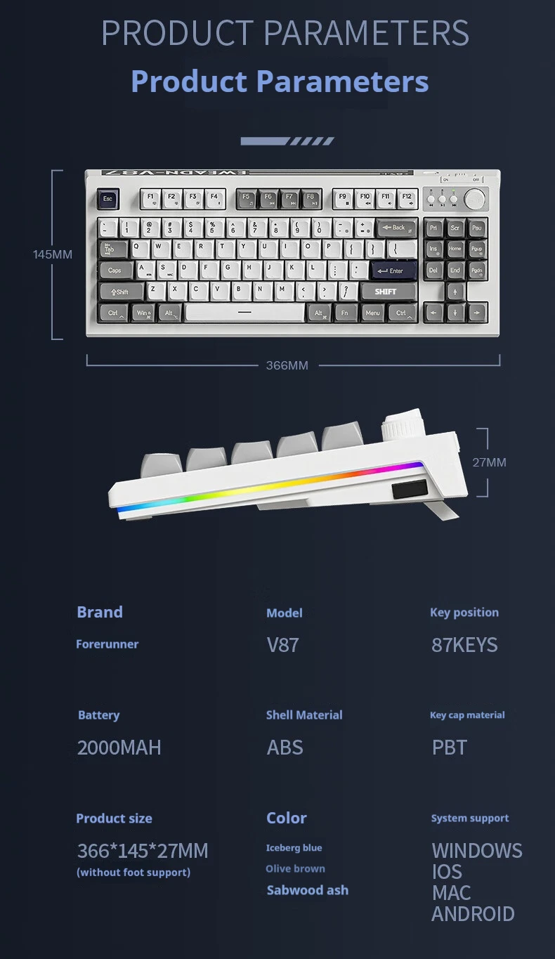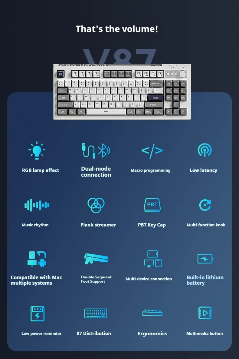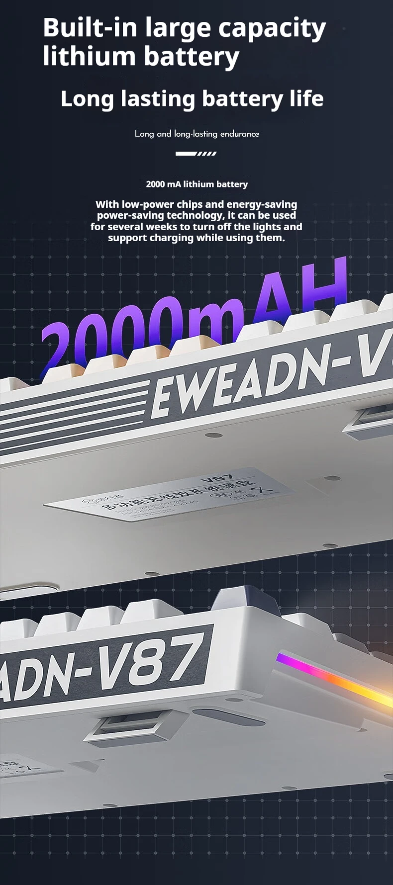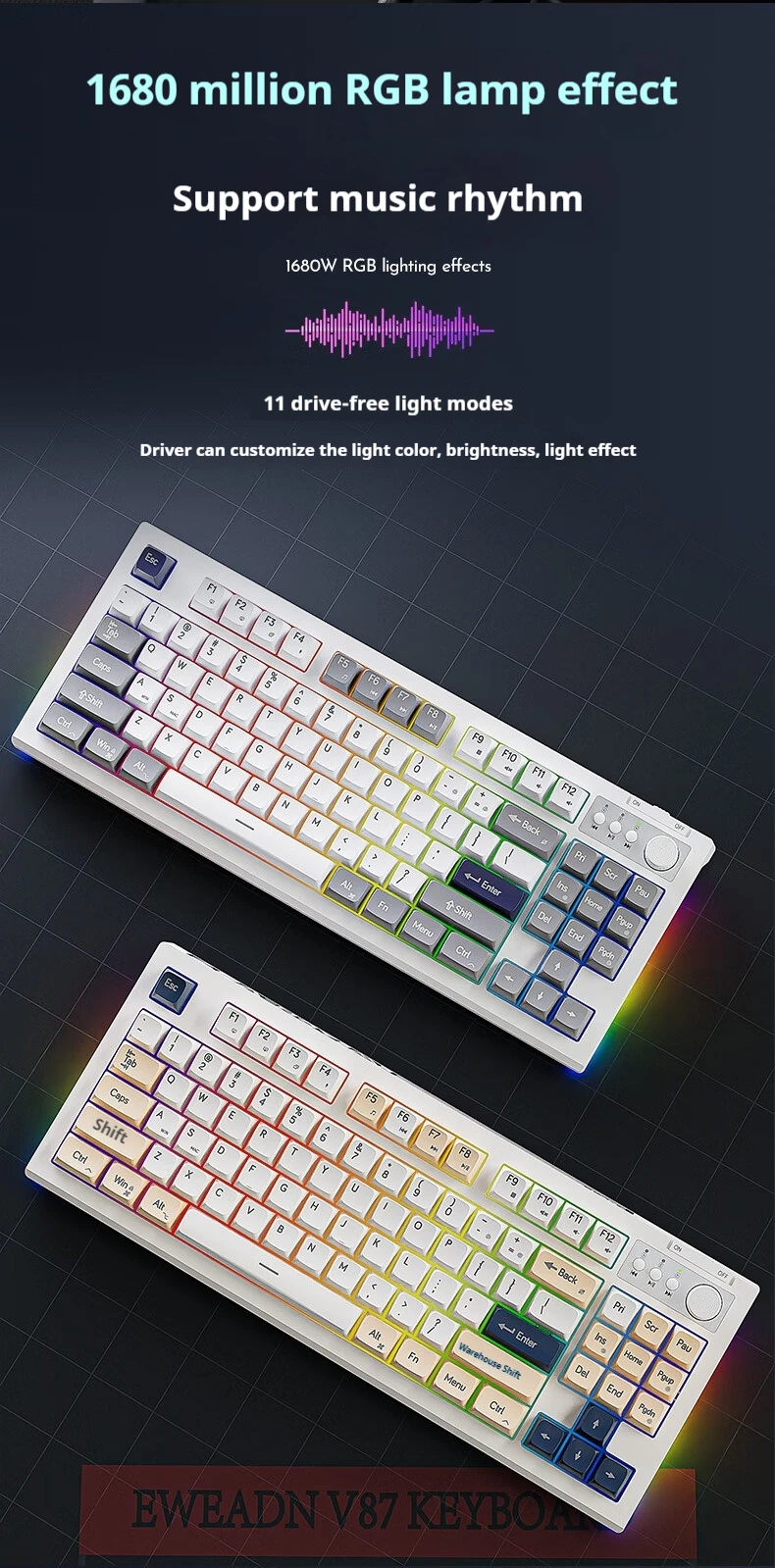 Comprar EWEADN V87 Juego de teclado y ratón inalámbricos Bluetooth RGB Breathe Rainbow Backlight carga tipo C teclado para juegos de oficina