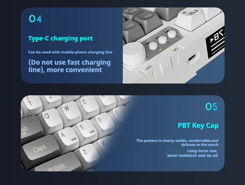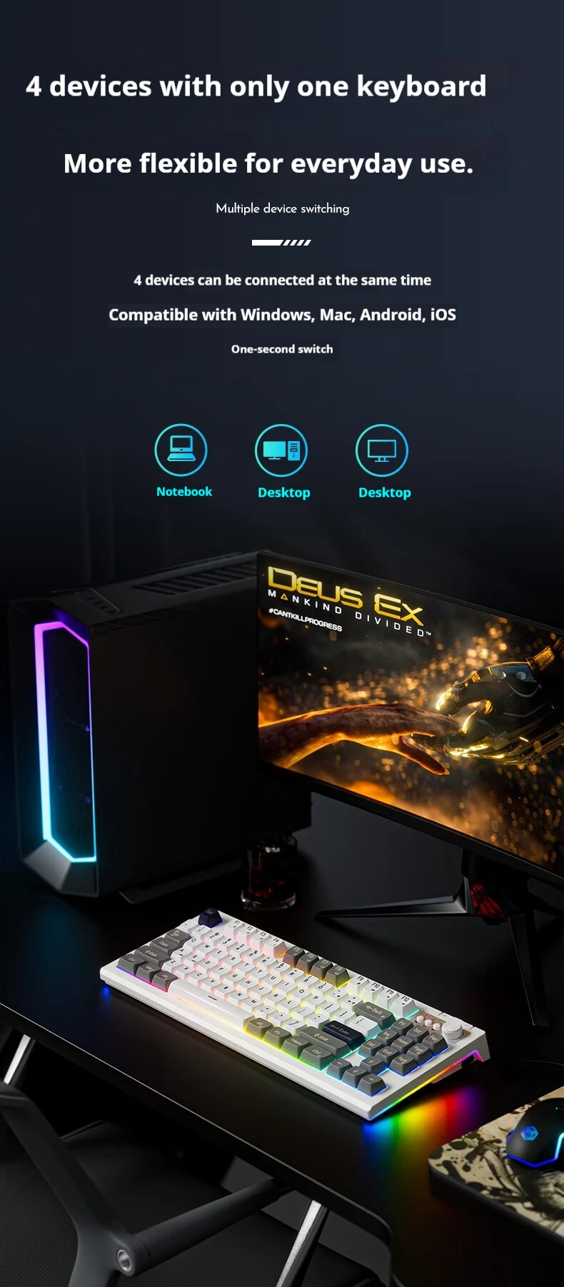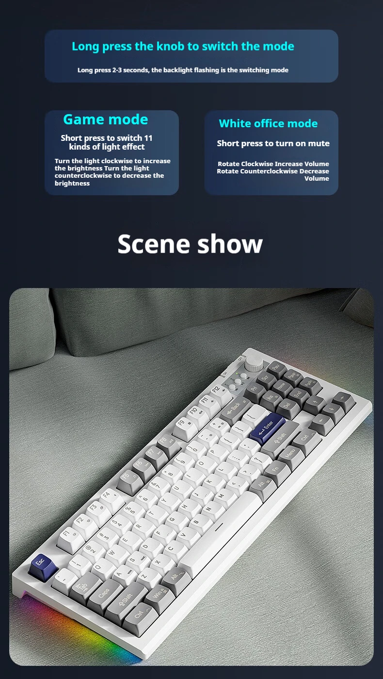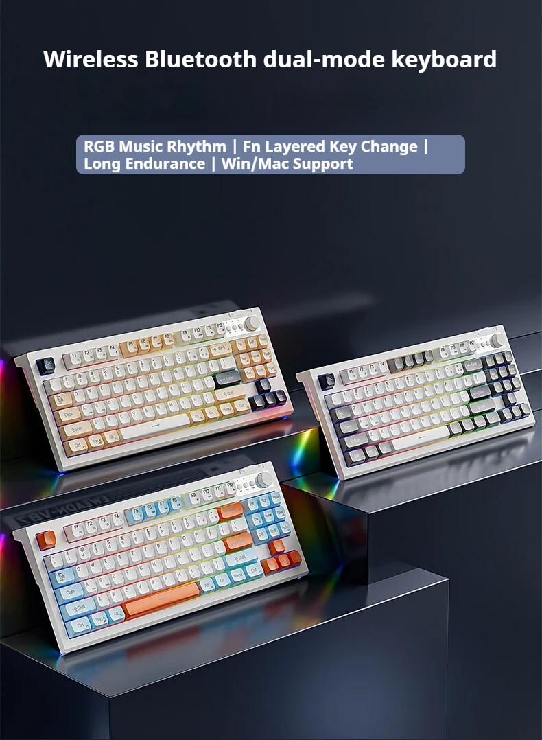 Comprar EWEADN V87 Juego de teclado y ratón inalámbricos Bluetooth RGB Breathe Rainbow Backlight carga tipo C teclado para juegos de oficina