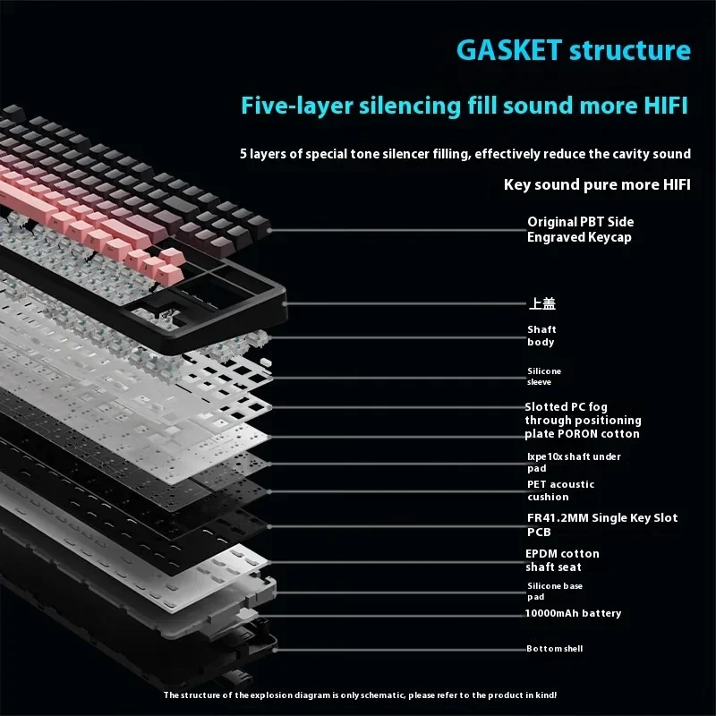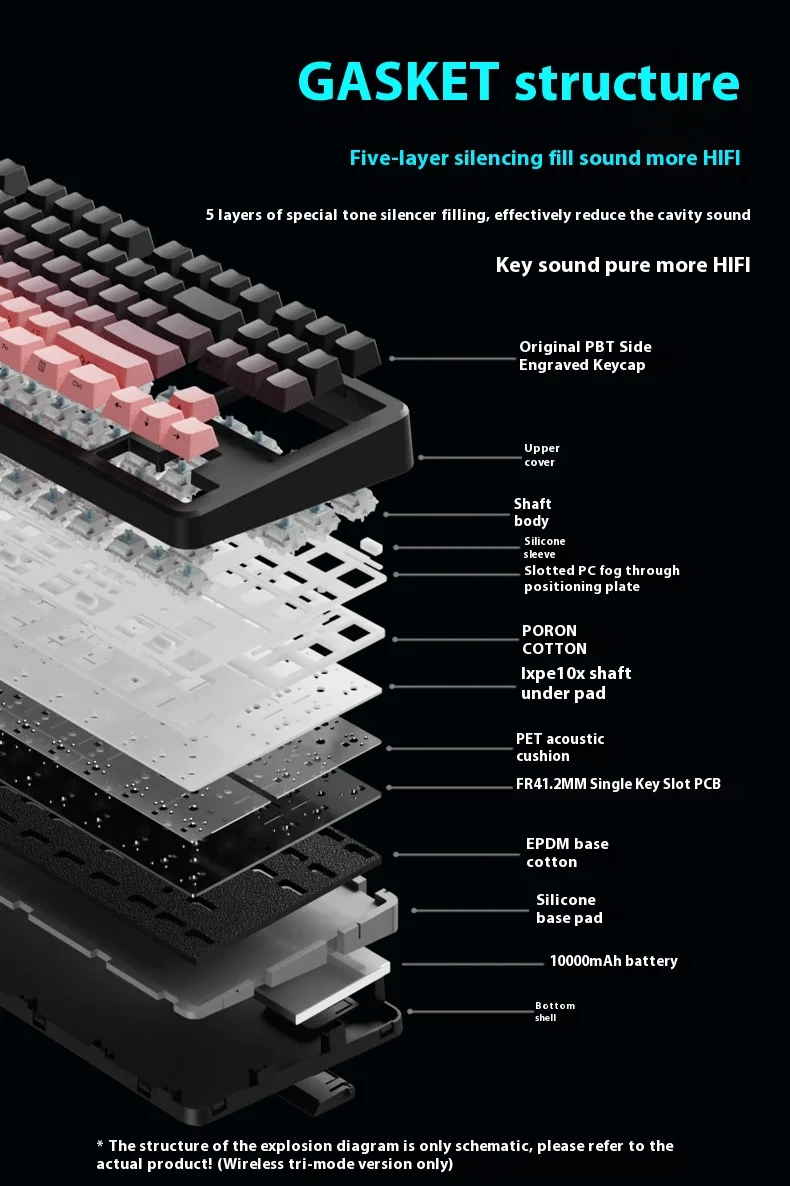 Diseño de junta y amortiguación de sonido de 5 capas. Diseñado con una estructura de junta de primera calidad y una amortiguación de 5 capas, cada pulsación de tecla ofrece una respuesta suave como la mantequilla y una firma acústica satisfactoria como el mármol".Di adiós a los ecos huecos y hola a la precisión refinada.