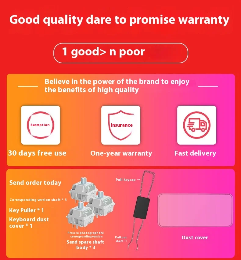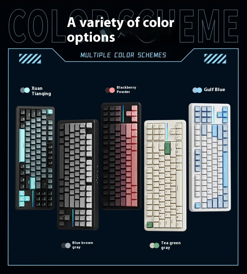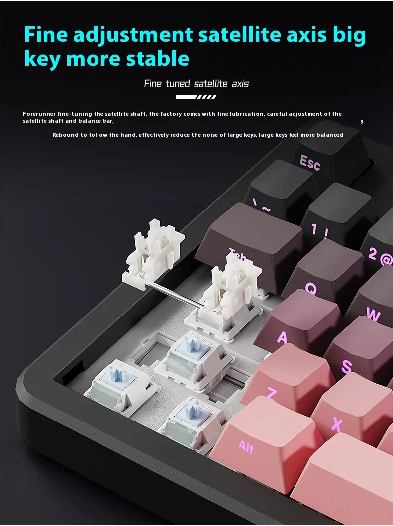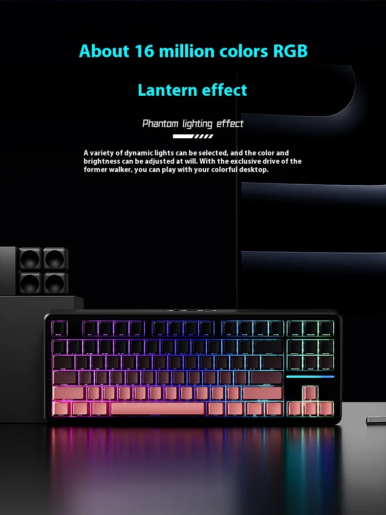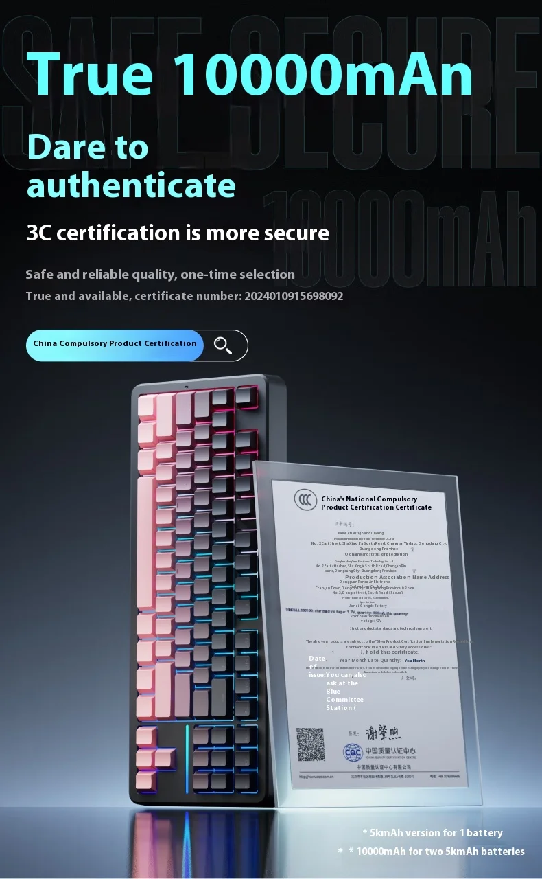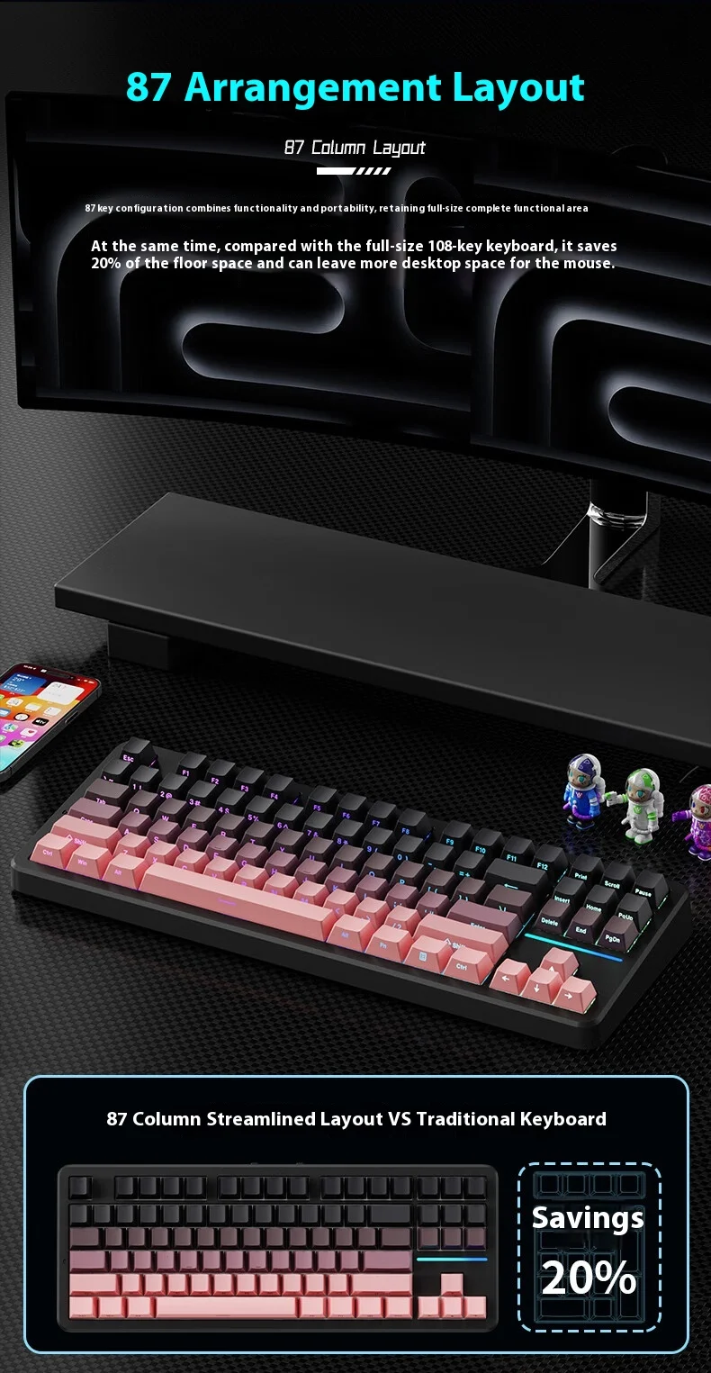 Potencia durante todo el día y estética impresionante Una robusta batería de 5000 mAh de uso prolongado de combustible, mientras que la llamativa combinación de colores Blackberry Pink agrega un toque de sofisticación a su escritorio.El diseño compacto de 87 teclas maximiza el espacio sin sacrificar la funcionalidad.