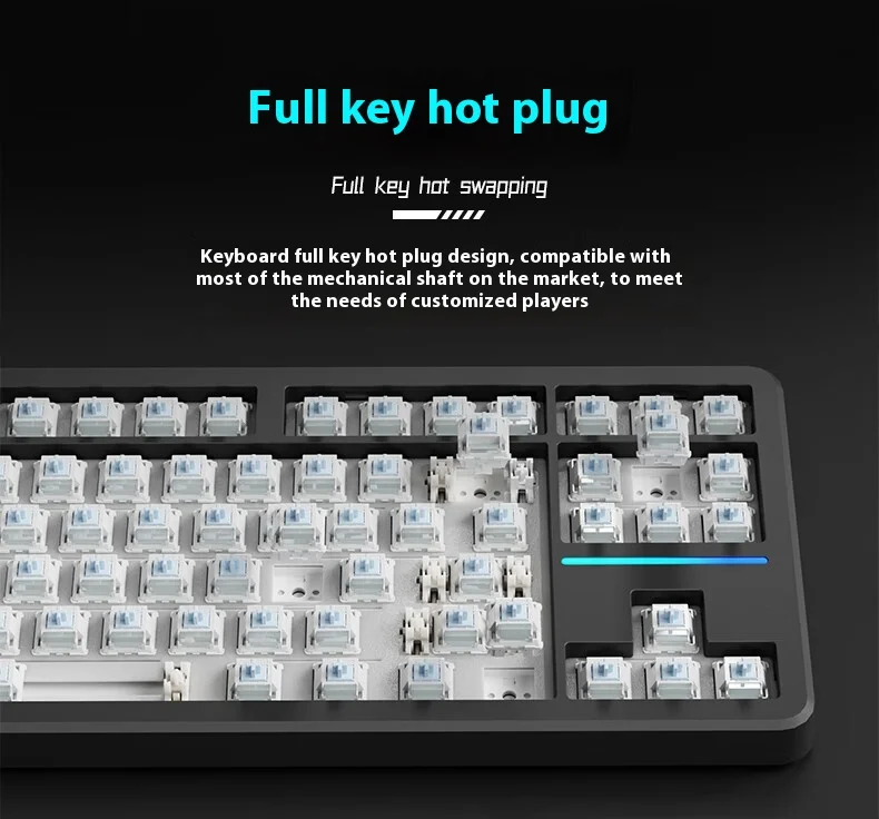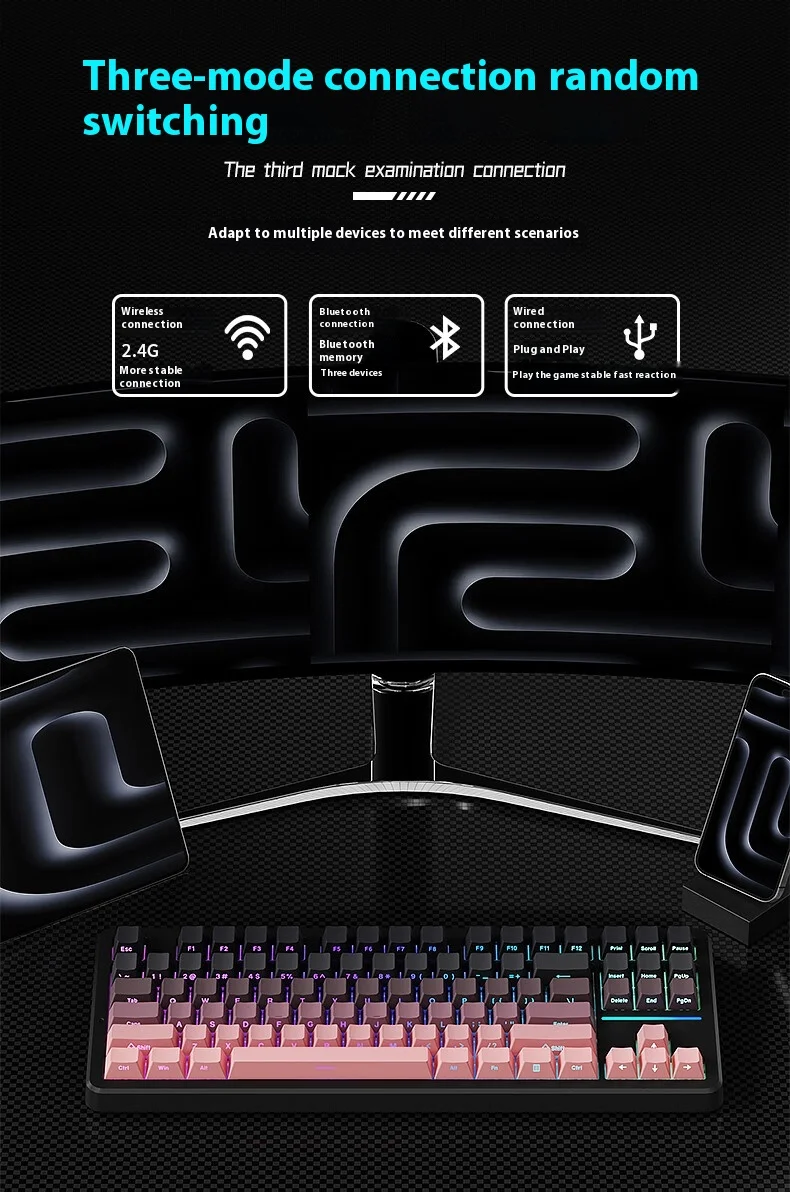 EWEADN X87 Teclado mecánico inalámbrico de eje ciruela negro Junta triodo Interruptor de 5 capas Teclado IPad de oficina para juegos de 5000mAh