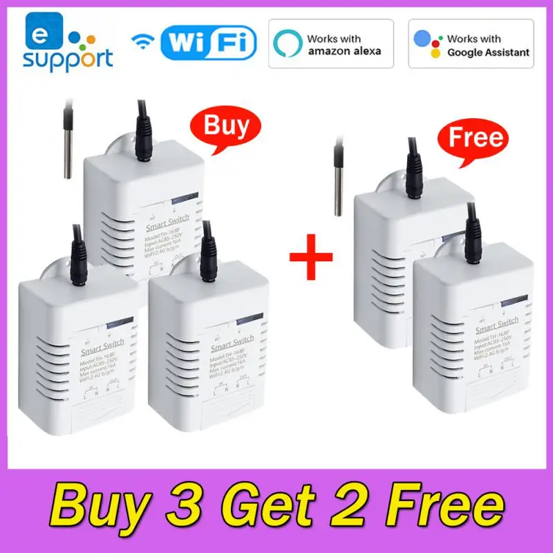 Comprar EWelink-interruptor inteligente con WiFi, Sensor de temperatura, 16A, 3000W, RF433, termostato inteligente, Compatible con Alexa y Google Home