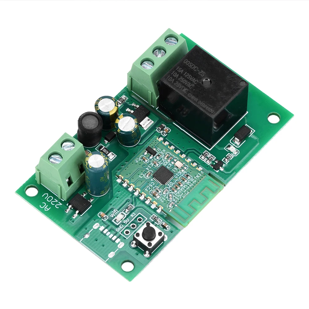 Característica:1. Fácil de usar, no requiere programación, solo necesita descargar una aplicación, conectarse al WIFI se puede controlar.2. Modo multifunción, punto de soporte/autobloqueo/modo de interruptor de enclavamiento.3. Bajo consumo de energía, potencia máxima de hasta 2200W/10A por vía.4. Admite frecuencia inalámbrica, Wifi 2,4 GHz b/g/n + Bluetooth, se puede cronometrar, retrasar, compartir el dispositivo admite el control de varias personas o de una persona para controlar múltiples interruptores.5. Amplia gama de uso, se puede aplicar a la casa inteligente, se puede conectar a diferentes tipos y marcas de electrodomésticos.Parámetros del productoMódulo de relé de conmutación inteligente de 1 canalVoltaje de entrada: AC220VPotencia máxima: 2200W/10AFrecuencia inalámbrica: 2,4 GHz Wifi b/g/n + BluetoothModo: clic, autobloqueoTemperatura de funcionamiento:-20 ℃ ~ 70 ℃Tamaño: 67,7 (L)* 40,7 (W)* 19(H)mmMódulo de relé de conmutación inteligente de 2 canalesVoltaje de entrada: AC220VPotencia máxima: 2200W/10A/por canalFrecuencia inalámbrica: 2,4 GHz Wifi b/g/n + BluetoothModo: Tap/autobloqueo/interruptor de enclavamientoTemperatura de funcionamiento:-20 ℃ ~ 70 ℃Tamaño: 33*104*19mmMódulo de relé de conmutación inteligente de 3 canalesVoltaje de entrada: AC220VPotencia máxima: 2200W/10A/por canalPotencia total: 16A 3500WFrecuencia inalámbrica: Wifi2.4 GHz b/g/n + BluetoothModo: Tap/autobloqueo/interruptor de enclavamientoTemperatura de funcionamiento:-20 ℃ ~ 70 ℃Tamaño: 59,3*72,3*19mmCompruebe lo siguiente antes de usar el dispositivo:1. Su tableta se ha conectado a un teléfono inteligente o de 2,4 WIFI G con acceso a Internet (El WIFI de 5G no es compatible por el momento).2. Habilite el Bluetooth en su teléfono.3. Para teléfonos o tabletas Android, el sistema debe ser 4,0 o superior.4. Para usar un iPhone o lPad, debe poder acceder a la APP Store y descargar aplicaciones.5. Si el filtrado de direcciones MAC está configurado en su enrutador inalámbrico, vaya al fondo del enrutador para deshabilitar la función de filtrado de direcciones MAC.Paquete incluido:1 x AC220V Ewelink Módulo de relé WiFi Bluetooth 1/2/3 canales inalámbrico Smart Home Control remoto interruptor grifo/autobloqueo/modos de enclavamiento