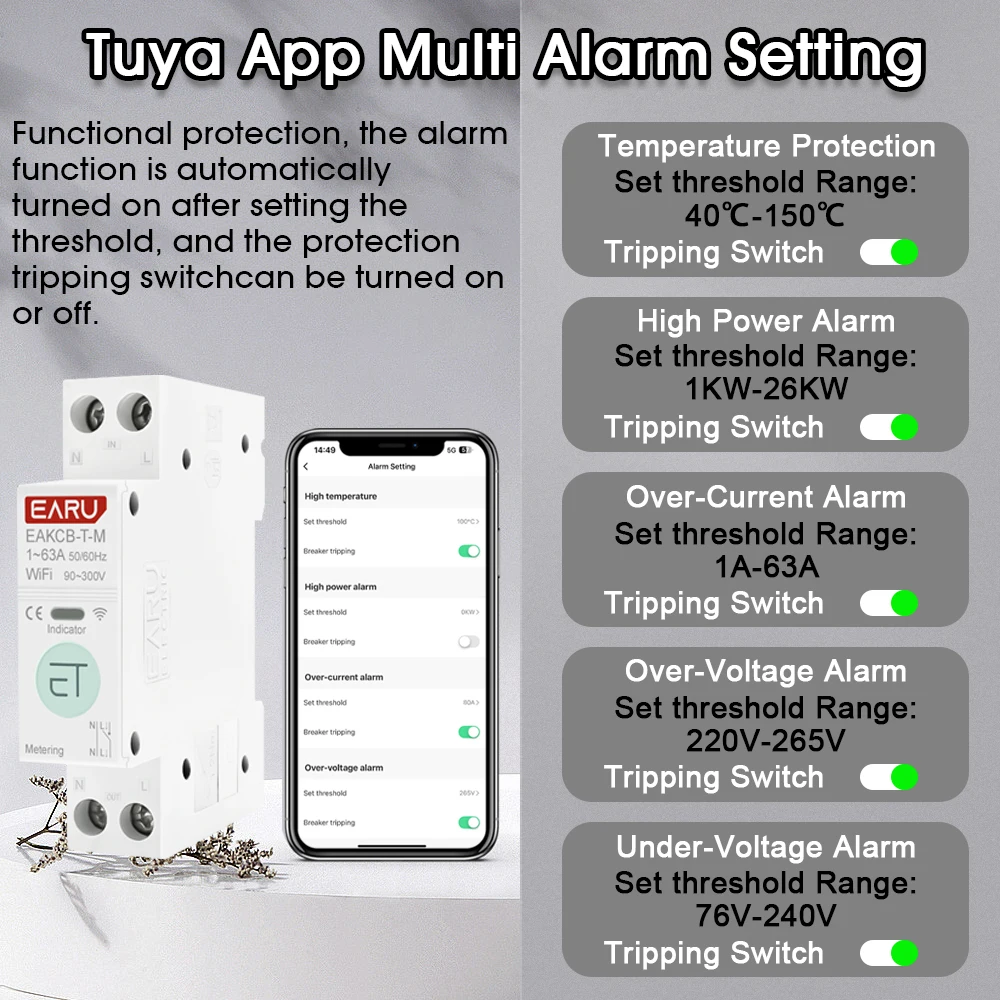Funciones múltiples de eWeLink:1. Límite de corriente (0,1 A-63 A ajustable)