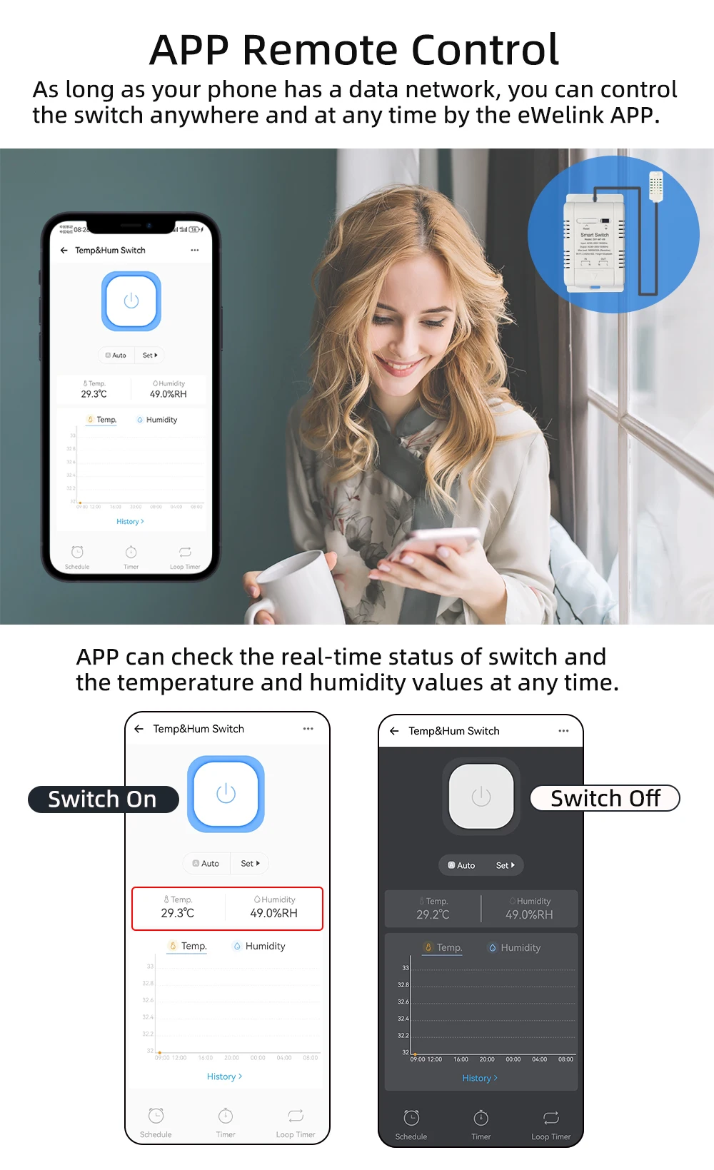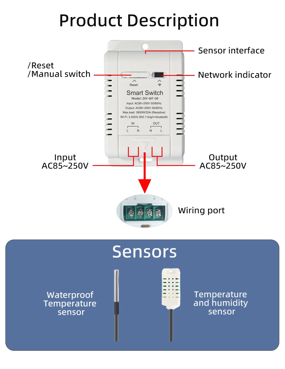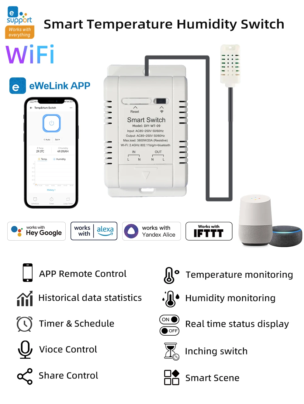 El funcionamiento es perfecto, tal como se describe, y las dimensiones son bastante compactas. Es posible calibrar la temperatura y configurar escenas para encender o apagar cuando se alcanzan los valores de temperatura o humedad establecidos. La parte estética del sensor podría mejorarse porque los cables entre los conectores y el cable son visibles.