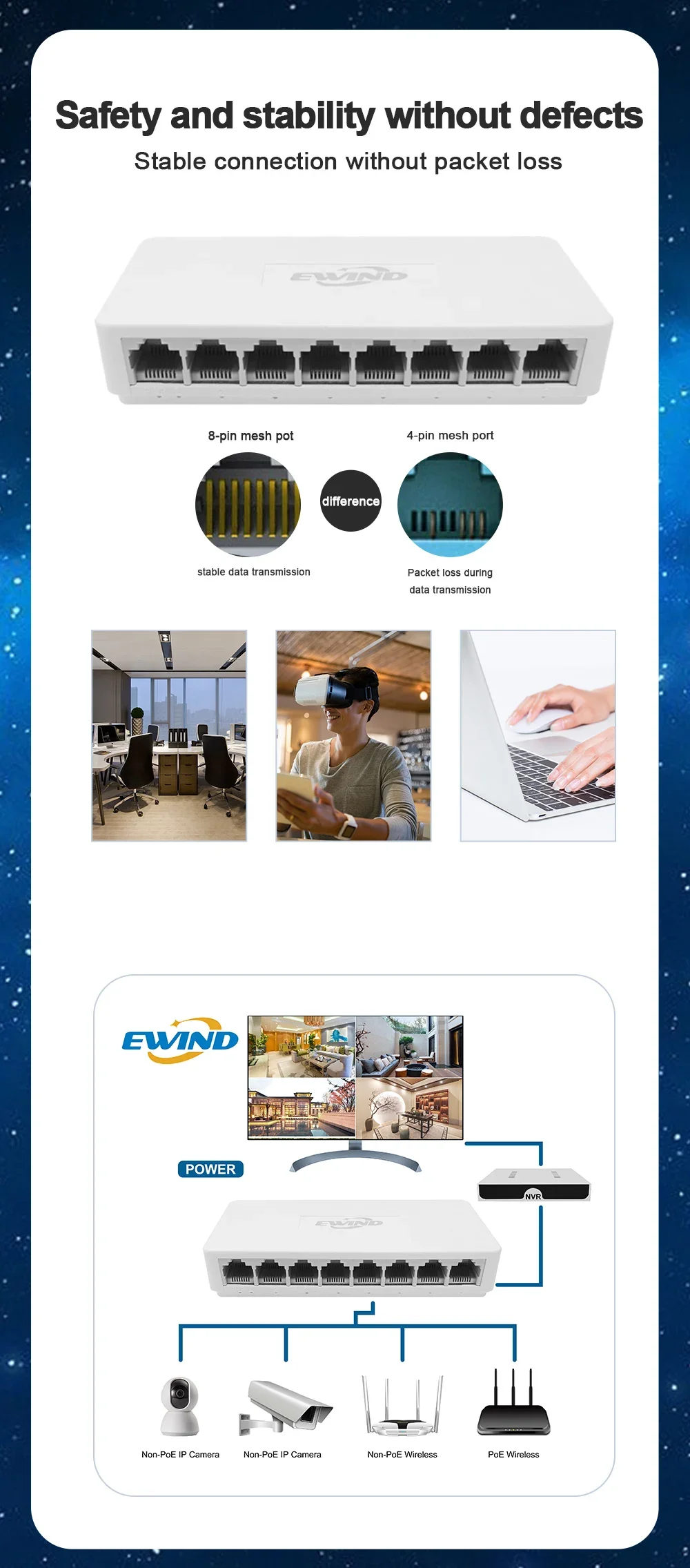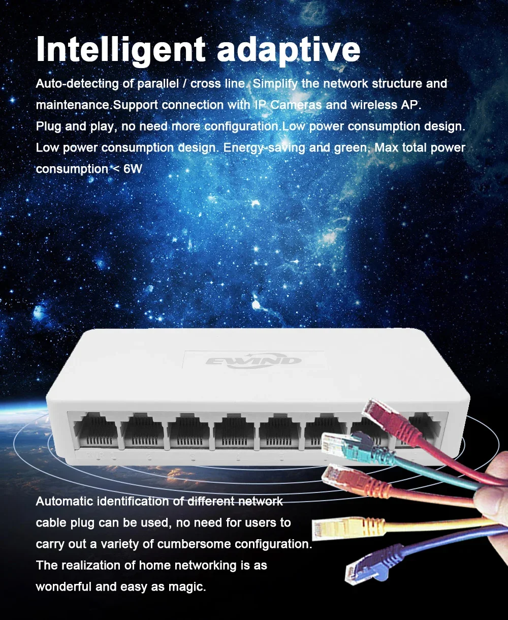 Comprar EWIND-conmutador Ethernet de 100/1000Mbps, adaptador de interruptor de red Gigabit de escritorio de 5/8 puertos, puerto RJ45 rápido, conmutador Ethernet automático MDI/MDIX